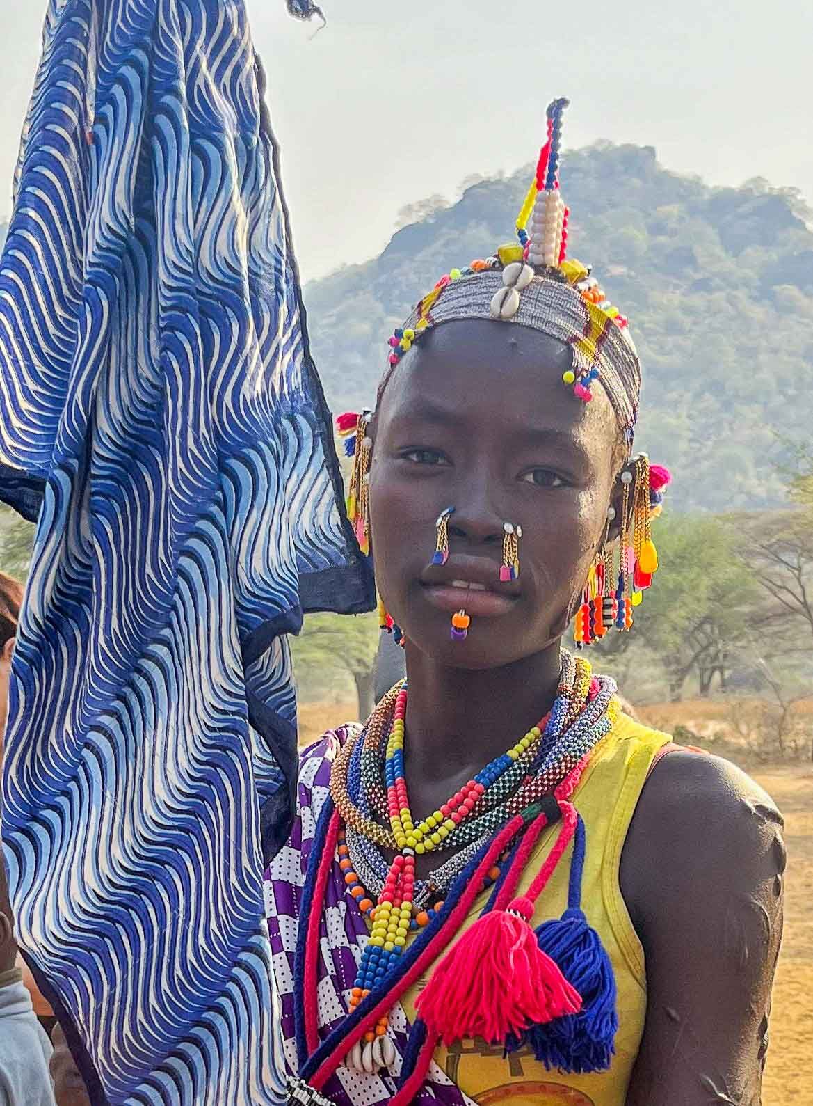 Αργά το βράδυ φτάσαμε έξω από το Τσαλαμίν, όπου μένουν μέλη της φυλής Λοτούκο. Στήσαμε τις σκηνές μας και κοιμηθήκαμε εξοντωμένοι από το κούνημα στο δρόμο. Το πρωί μας ξύπνησαν άγνωστες φωνές και συνομιλίες. Ένα πολύχρωμο κονβόι γυναικών κατηφόριζε από το χωριό προς τα εμάς, κρατώνταςπλαστικά μπιτόνια για νερό, βλέπετε, είχαμε κατασκηνώσει δίπλα στη γεώτρηση.Ο οικισμός είναι χτισμένοςσε έναν λόφο ακριβώς από πάνω, αφού η πεδιάδα, κατά την διάρκεια των πρόσφατων συγκρούσεων, δεν ήταν πια ασφαλής. Ανεβαίνουμε με περιέργεια, ενώ ακούγονται τύμπανα, όπως μάθαμε, για να μας υποδεχτούν! Στην κεντρική πλατεία, βλέπουμε τους τυμπανιστές και ένα βωμό από πασσάλους με μια μεγάλη πέτρα που χρησιμοποιείται σε τελετές. Με τη βοήθεια του συνοδού μας συζητήσαμε με την αντρική ομήγυρη (οι γυναίκες δυστυχώς για μας ήταν απασχολημένες με διάφορες εργασίες) για το πώς είναι οργανωμένη η καθημερινότητά τους. Ασχολούνται με τη γεωργία (οι γυναίκες) και με την κτηνοτροφία (οι άντρες), ανταλλάσσουν κάποια προϊόντα με την πόλη, τις βασικές τους αποφάσεις τις λαμβάνει ένα όργανο που αποτελείται από τους άρρενες πολεμιστές, (σε ηλικία που μπορούν να πολεμήσουν). Στην τέλεση γάμου, ο γαμπρός πληρώνει την οικογένεια της νύφης, διόλου παράδοξο, καθώς οι γυναίκες είδαμε να διεκπεραιώνουν όλες τις εργασίες του νοικοκυριού, αλλά και τις αγροτικές!