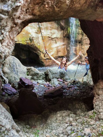 Το επόμενο πρωί, έχω ξυπνήσει από τον διαπεραστικό ήχο ενός ζωηρού κόκορα. Προς έκπληξή μου, η παρέα είναι ήδη έτοιμη για νέες περιπέτειες. Αφού γευτούμε για ακόμη μία φορά το πλούσιο χωριάτικο πρωινό, αποχαιρετούμε τον κ. Κώστα, ευχαριστώντας τον για τη φιλοξενία και κυρίως για τις απίστευτες ιστορίες που μας εκμυστηρεύθηκε. Οδεύουμε με τα τζιπ για την Τρύπα του Αγραφιώτη ή Τρύπα Όσκλιανη. Περπατώντας συναντάμε μια μεγάλη παρέα από κατσίκια και γίδια, που μας ακολουθούν μάλλον από περιέργεια. Το μονοπάτι δεν είναι μεγάλο· έχει συνολικό μήκος 600-700 μέτρα. Στο τέλος του στενεύει φτάνοντας τα 4-5 μέτρα πλάτος, σχηματίζοντας την χαρακτηριστική «τρύπα», που δέχεται και τον μεγαλύτερο όγκο νερού του Αγραφιώτη. Ολόγυρα ορθώνονται οι μεγάλοι κάθετοι βράχοι του φαραγγιού με τα εντυπωσιακά πολύχρωμα πετρώματα και τα νερά, που τρέχουν από ψηλά ,σχηματίζοντας φασαριόζους καταρράκτες. Μία ήρεμη, μικρή λίμνη μπροστά ακριβώς από έναν πελώριο βράχο μας καλεί, να βουτήξουμε! Γιγαντιαία υδροχαρή φυτά κρέμονται από ψηλά με το καταπράσινο σώμα τους να λειτουργεί ως υποδοχέας των άφθονων νερών, που κυλάνε με βροντώδη ήχο. Οι υδάτινες κουρτίνες και οι σταγόνες που πεταρίζουν παντού, αντανακλώντας στο φως τα χρώματα της ίριδας, δημιουργούν ένα πανέμορφο σκηνικό, που θυμίζει το διάσημο «Πανταβρέχει». Σε μικρότερη κλίμακα και σαφώς άγνωστο, ξεχασμένο, κρυμμένο. Δικαιολογεί απόλυτα τους μύθους, ότι εδώ κρύβονταν ληστές και φυγόδικοι. Όλοι συμφωνούμε όμως σε ένα πράγμα: κάπως έτσι πρέπει να είναι ο Παράδεισος!
