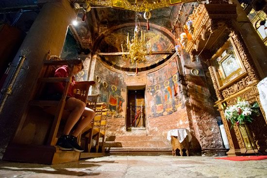 Άλλος τοποθετεί ειδικά παπούτσια, άλλος συνεχίζει με αυτά που φορούσε και οι πιο τολμηροί προχωρούν, πατώντας τα γυμνά πόδια τους στα κρύα γλιστερά βράχια του ποταμού. Σιγά σιγά το νερό φτάνει ίσαμε το γόνατο. Αν παραμείνεις ένα λεπτό παραπάνω, νιώθεις τα δάχτυλά σου να μουδιάζουν από τον παγωμένο Αγραφιώτη. Το να ισορροπείς, βαδίζοντας πάνω σε βράχια, βουτηγμένα στο ορμητικό νερό είναι τελικά μια πολύ δύσκολη διαδικασία. Πολλοί γλιστρούν και πέφτουν μα πάντα ένα χέρι από την ομάδα είναι εκεί, να τους συγκρατήσει. Κανείς μας δεν αποκτά μια μεγαλύτερη και πιο παγωμένη επαφή με το νερό, ευτυχώς! Η ομάδα ενωμένη προχωρά μία από τη δεξιά όχθη και μία από την αριστερή. Μπροστά μας ο ήλιος, οδηγός, παίζει κρυφτό με τις άκρες του φαραγγιού. Συναντάμε έναν μικρό καταρράκτη, περίπου τρία με τέσσερα μέτρα, που σχηματίζει μια μικρή λιμνούλα. Το νερό κρύσταλλο και πεντακάθαρο. Η υδάτινη πορεία μας τελειώνει, μόλις συναντήσουμε τη μεγάλη τσιμεντένια γέφυρα και το Σκυλόρεμα, τον κυριότερο τροφοδότη του Αγραφιώτη. Ο Παναγιώτης ανακοινώνει στάση για ξεκούραση και αλλαγή παπουτσιών και όλοι μας υποδεχόμαστε με ανακούφιση τα λόγια του. Στεγνές κάλτσες, ζεστά παπούτσια και βουρ στις σακούλες που έχουν ανοιχτεί. Σαλάμι, γραβιέρα, ζυμωτό ψωμί και τσίπουρο για όσους κρύωσαν. Καθώς μασουλάμε, συζητάμε για τη μέχρι τώρα εμπειρία μας, ενώ μαγευόμαστε από καλλιτεχνικούς λαξευμένους μαιάνδρους, που έχουν δημιουργηθεί στον απέναντι βράχο. Ξεκινάμε πάλι, ενδυναμωμένοι σωματικά αλλά και ψυχικά. Μετά από 5 λεπτά αφήνουμε το ποτάμι και πεζοπορούμε σε ένα πυκνό δάσος οξιάς. Είναι τόσο πυκνό, που σκοτάδι έχει σκεπάσει το σκαλιστό μονοπάτι. Εντυπωσιάζομαι από την τέχνη των παλιών μαστόρων, που στους απότομους γκρεμούς του φαραγγιού έχουν κατασκευάσει ένα σταθερό δρόμο για ανθρώπους και ζώα. Ένας από αυτούς ήταν ο Χρήστος Ζιώγας. Όπως μας διηγείται ο γιος του, τον δένανε με σχοινιά και τον κατέβαζαν στο ανάλογο ύψος, ώστε να τοποθετήσει εκρηκτικά και να σκαφτεί ο βράχος. Μαζί με άλλους ντόπιους εργάστηκαν σκληρά για τη διάνοιξη των επικίνδυνων μερών του μονοπατιού. Σε κάποια σημεία το μονοπάτι έχει υποχωρήσει και περνάμε με ένα μικρό άλμα, ένας ένας, με κομμένη την ανάσα. Τολμάω να κοιτάξω προς τα κάτω. Γκρεμός. Κάποιος πετάει μια πέτρα, για να ακούσουμε την πρόσκρουση στο νερό. Μάταια. Η σύμπνοια της ομάδας συμπαρασύρει κι αυτούς που λιγοψυχούν. Περνάμε όλοι με ασφάλεια και συνεχίζουμε την πορεία μας στη σμιλεμένη από τον άνθρωπο πλαγιά του φαραγγιού. Τώρα οι οξιές δίνουν τη θέση τους σε ένα παχύ ελατοδάσος. Είναι γεμάτο από μανιτάρια κάθε σχήματος, χρώματος και μεγέθους. Το έμπειρο μάτι του Παναγιώτη ξεχωρίζει τα βρώσιμα. Με γρήγορες χειρουργικές κινήσεις γεμίζει μια σακούλα μανιτάρια, που θα απολαύσουμε τηγανητά, το βράδυ, στον ξενώνα. Ύστερα από λίγη ώρα, φτάνουμε σε ένα ξέφωτο. Ένα πέτρινο προσκυνητάρι μας μαρτυρά, πως αν σηκώσουμε το βλέμμα μας απέναντι, μπορούμε να διακρίνουμε τη Μονή της Παναγίας της Στάνας. Η Αγία των Αγράφων μοιάζει σαν να αιωρείται πάνω από τους απότομους γρανιτένιους βράχους. Τα πόδια μου αρχίζουν να μη με υπακούν από την κούραση αλλά λίγα λεπτά αργότερα, ύστερα από μια μικρή ανηφοριά, βγαίνουμε στην άσφαλτο και στην πινακίδα που σημαίνει το τέλος του μονοπατιού. Αυτό που χρειαζόμαστε όλοι είναι ένα ζεστό μπάνιο, ένα σφηνάκι ρακόμελο στα Άγρ