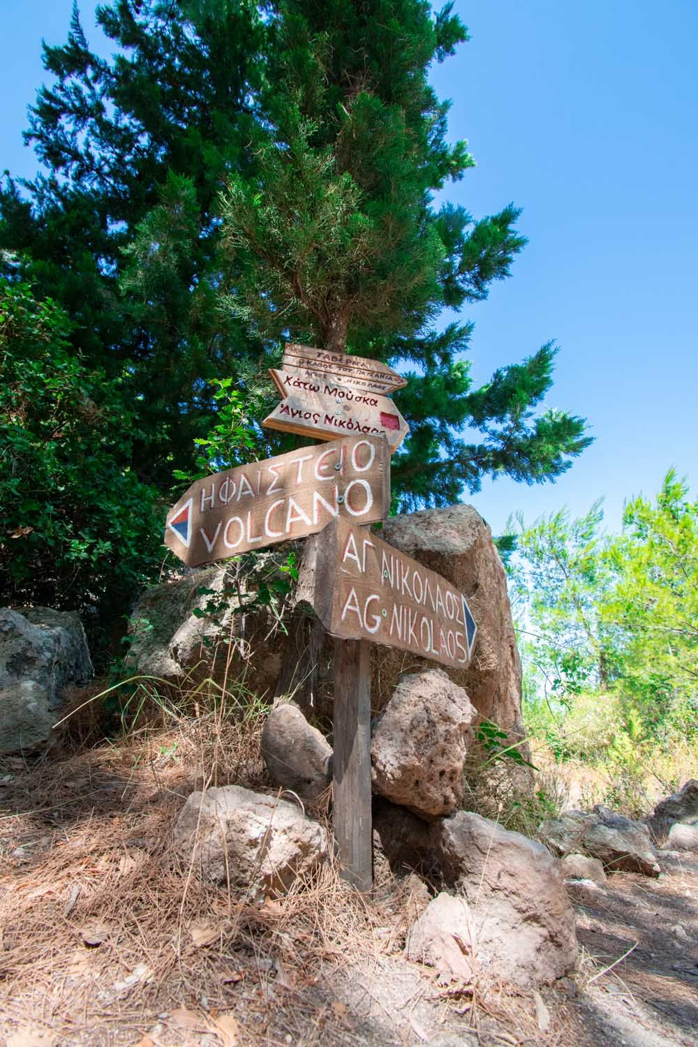 Στην παρέα µας έχουµε πια και τη Λάκι, τη συµπαθέστατη σκυλίτσα του Σπύρου που µας ακολουθεί στο τελευταίο τµήµα της διαδροµής. Αντικρίζουµε την πινακίδα που γράφει «Ηφαίστειο - Volcano».
