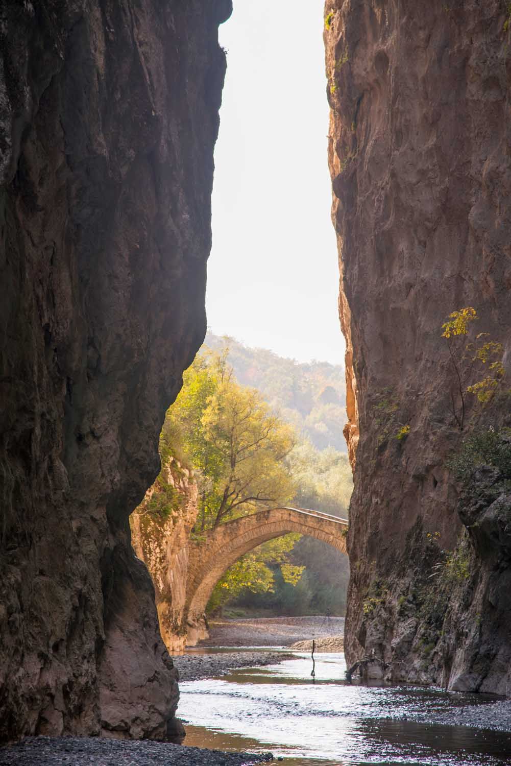 Τοπίο όμορφο, άγριο, επιβλητικό, γεμάτο δύναμη και ζωηρές ενεργειακές δονήσεις. Ένα απέραντο κάστρο ήταν κάποτε ο οικισμός του Σπηλαίου, νότια του όρους Όρλιακα. Ένα απέραντο φυσικό φρούριο, οχυρωμένο περιμετρικά ήδη από την αρχαιότητα. «Τα τείχη είναι βυζαντινά, τα θεμέλιά τους όμως ανάγονται στη ρωμαϊκή και την ελληνιστική εποχή» πληροφορούμαστε στη μικρή Κοινοτική Βιβλιοθήκη της πανέμορφης πλατείας. Η περιοχή κατοικείται από την πρώιμη Εποχή του σιδήρου αποτελώντας τόπο αδιάκοπης αρχαιολογικής έρευνας. Σε πολλές περιοχές έχουν εντοπιστεί ευρήματα από τη Νεολιθική εποχή, ενώ ακριβώς κάτω από το σημείο όπου βρισκόμαστε υπάρχουν αρχαίοι τάφοι με ευρήματα όμοια με των νεκροταφείων της Μακεδονίας. Στην είσοδο του οικισμού επισκεπτόμαστε την πανέμορφη Μονή Κοιμήσεως της Θεοτόκου (1633) με το αγιορείτικου τύπου καθολικό της Παναγιάς. Το χωριό κάηκε από τους Γερμανούς και έπειτα τα σπίτια χτίστηκαν με υλικό από τα τείχη του κάστρου, με αποτέλεσμα αυτό να καταρρεύσει… Το φαράγγι της Πορτίτσας δεν ήταν παρά μία από τις πύλες εισόδου στο απέραντο αυτό φυσικό φρούριο, μία από τις «πόρτες» του, αλλά κι ένα απίστευτου μεγέθους φυσικό αξιοθέατο. Οι θεόρατοι κατακόρυφοι βράχοι στη διαδρομή θυμίζουν έντονα τη μορφολογία των Μετεώρων και μας συντροφεύουν μέχρι την απέραντη κοιλάδα του Βενέτικου. Η θέασή της και μόνο από ψηλά σου κόβει την ανάσα… Με άνοιγμα 100 μ., καθορίζεται από το τεράστιο κατακόρυφο ύψωμα που ορθώνεται στα 220 μ. πάνω από το ποτάμι κι είναι κομμένο στα δύο. Τεκτονικό ρήγμα που δημιουργήθηκε και με τη συμβολή του ποταμού τέμνοντας κάθετα το βουνό και αφήνοντας στο στενότερο σημείο του πέρασμα μόλις 8 μ.! Στη βάση του το ομώνυμο δίτοξο γεφύρι του 1830, ύψους 8 μ. και μήκους 34 μ. μοιάζει με μινιατούρα. Ανήσυχος και ορμητικός ο Βενέτικος, δεν αστειεύεται. Μιας όμως και ο καιρός, η ανεκτή θερμοκρασία και η χαμηλή στάθμη των νερών μάς το επέτρεψαν, θα τολμήσουμε ένα μίνι river trekking στην απροσπέλαστη χαράδρα. Το πλάτος της ολοένα και στενεύει, ερεθίζοντας την αδρεναλίνη, που κορυφώνεται στο σημείο όπου και μόνο το άκουσμα των νερών στο βάθος σε κάνει να νιώθεις μηδαμινός μπροστά στην ανυπόταχτη ορμή τους, την ασύλληπτη δύναμη της φύσης και της γης… Κι ενώ ήμασταν σίγουροι πως… τα είχαμε δει όλα, τα καλύτερα ο Γιάννης μας τα φυλούσε για το τέλος.