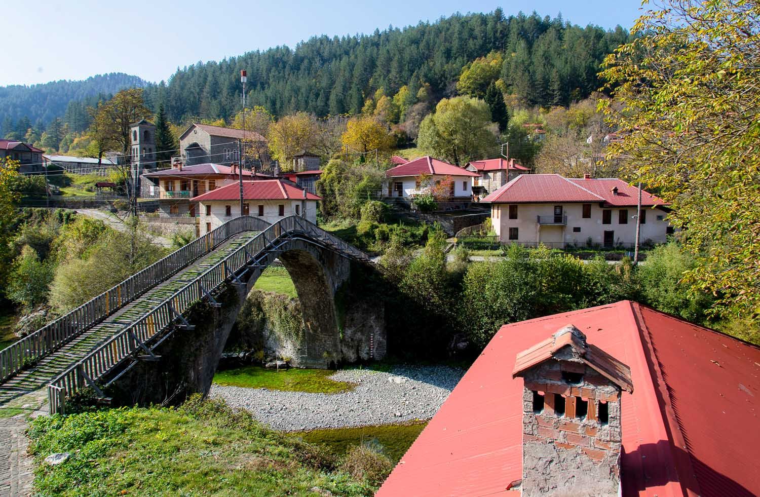Από τον περίβολο του μεγαλόπρεπου ναού της Κοίμησης στο Περιβόλι, αγναντεύομε τις πολύχρωμες στέγες του οικισμού, που ξεδιπλώνεται αμφιθεατρικά στα πόδια μας. Το πανέμορφο αναπαλαιωμένο εκκλησάκι του Αγίου Νικολάου (1893) με τους δύο τρούλους, βρίσκεται 6 χλμ. έξω από το χωριό. Βοσκοτόπια λαμπυρίζουνε στο φως, πέτρινα τοξωτά γεφύρια (140 μετράει όλος ο δρυμός!), ξωκλήσια διάσπαρτα, συντροφεύουν την πορεία μας αυτή παράλληλα με τα νερά του Βενέτικου. Ξυλεία παντού και εργάτες του ξύλου στα καταπράσινα λιβάδια, δίπλα στις δασωμένες πλαγιές, δίνουν το στίγμα του τόπου. Η υλοτομία ανέκαθεν αποτελούσε την κύρια ασχολία των κατοίκων στους οικισμούς της κοιλάδας. «Η κοπή δέντρων σε συγκεκριμένες θέσεις του δάσους το βοηθά να δέχεται περισσότερο φως, να αναπνέει και να αναζωογονείται» θα μας πουν, κοπάζοντας τις όποιες περιβαλλοντικές μας ανησυχίες… Τα σκήπτρα στον τομέα επεξεργασίας του ξύλου κρατά αναμφίβολα η Μηλιά (Αμέρου στα βλάχικα), μια άγνωστη γωνιά της Πίνδου, 12 μόλις χλμ. από το Μέτσοβο. Με δύο δασικούς συνεταιρισμούς, που εκμεταλλεύονται 36.000 στρέμματα δασικής έκτασης, το πανέμορφο βλαχοχώρι κατάφερε να μηδενίσει την ανεργία κρατώντας εκεί τους νέους και τα παιδιά. «Πάνω από 35 εργαστήρια ξυλείας λειτουργούν στο χωριό. Η τέχνη μεταφέρεται από γενιά σε γενιά» θα μας πει ο κ. Γιώργος στο καφενείο του στην πλατεία. Χτισμένη σε περίοπτη θέση στα ψηλά, αισθάνεσαι να σε περιβάλλει γύρω σου ο οικισμός με τα παραδοσιακά σπιτάκια και τις εκκλησιές με τα θεόρατα καμπαναριά. Η βαλσαμωμένη αρκούδα στη βιτρίνα (που την ξέβαψε ο ήλιος κάνοντάς τη να μοιάζει… πολική!), το λαογραφικό μουσείο και φυσικά τα εργαστήρια ξυλείας είναι κάποια από τα αξιοθέατά του. Αλλού κόβουν τους κορμούς, αλλού κεντούν με τον τόρνο σχήματα και μορφές: σβούρες, σουβενίρ και χρηστικά αντικείμενα… «Από δω προμηθεύεται ξυλεία σχεδόν όλη η Ελλάδα…» Ένα είναι σίγουρο, πως σπάνια βλέπεις τους ανθρώπους να εργάζονται με τόσο κέφι, άλλος αέρας φαίνεται φυσά στα 1.180 μ. υψόμετρο!