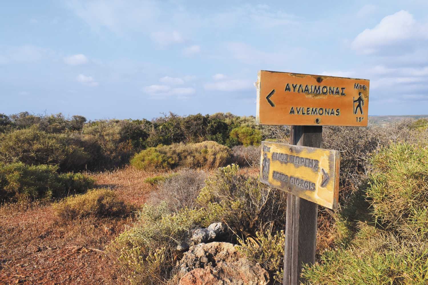 Την επόμενη μέρα, αφού πάρω πολύτιμη ενέργεια από το πεντανόστιμο και θρεπτικό μέλι που παράγει ο ίδιος, ξεκινάμε μαζί για το μονοπάτι στα Μητάτα. Μου εξηγεί πως από Σεπτέμβρη θα γίνουν οι απαραίτητες ενέργειες για τη σηματοδότησή του, καθώς κατηφορίζουμε τον χωματόδρομο μπροστά από την εκκλησία του Αϊ-Γιάννη του Χαλινωτή. Είναι κτισμένη μέσα σε μια σπηλιά. Εγώ εντυπωσιάζομαι, μα ο συνονόματος του αγίου ξεναγός μου μειδιά. Γνωρίζει πως στη συνέχεια μας περιμένουν κρυμμένα ακόμα καλύτερα πράγματα. Καθώς περνάμε από ερειπωμένους νερόμυλους και οινοποιεία, ρουφώντας πάντα την οσμή από το πανταχού παρόν θυμάρι, το άκουσμα της πατημασιάς μου αλλάζει, σαν να σπάω κάτι. «Μην ανησυχείς», με καθησυχάζει ο κ. Γιάννης, «είναι κοχύλια». Ναι, σε υψόμετρο 325 μέτρων πατάμε κοχύλια. Πριν από δύο εκατομμύρια χρόνια, όπως μου εξηγεί, εδώ ήταν ο βυθός της θάλασσας. Η πινακίδα και τα σκαλισμένα σκαλοπάτια μάς οδηγούν στη Μαύρη Σπηλαία, ένα μεγάλο άνοιγμα κάτω από τους βράχους με τους λαξεμένους θόλους, τους σταλακτίτες και τις γούρνες από νερό, με έντονο το μαύρο χρώμα στους βράχους από τους μύκητες, αιτία της ονομασίας της σπηλιάς. Μυστήριο η χρήση της. Ίσως ήταν αρχαίος λατρευτικός τόπος, ίσως κρυψώνα ντόπιων από τους πειρατές. Δίπλα, χωμένο στους βράχους, το εκκλησάκι του Αγίου Γεωργίου με την παλαιοβυζαντινή επιγραφή ακόμα εκεί, να μαρτυρά τη μακραίωνη ιστορία του. Στον δρόμο για το φαράγγι του Τσάκωνα και το τέλος του μονοπατιού, παρατηρώ τη μεγάλη ποσότητα νερού που κρύβει το νησί στα σπλάχνα του, ανάμεσα στις ρεματιές. Μικρές λίμνες σχηματίζονται παντού και είναι φανερό πως ο άνθρωπος το εκμεταλλεύτηκε αυτό στο έπακρον αφού το μονοπάτι ταυτίζεται με το μυλαύλακο, το τεχνητό αυλάκι για να κυλά το νερό των πηγών από νερόμυλο σε νερόμυλο ώστε να μην πηγαίνει τίποτα χαμένο. Γεμάτος εικόνες και αρώματα αλλά καθόλου κουρασμένος, οδεύω προς το βόρειο τμήμα του νησιού, ώστε να προλάβω δύο διαδρομές πριν νυχτώσει. Ξεκινώ από το χωριό Ποταμός, όπου αρχίζει η σηματοδότηση του μονοπατιού Μ31. Περνώ από τα Τριφυλλιάνικα και κάνω μια μικρή παράκαμψη προς το τέλος του χωριού για να δω την ξακουστή πηγή του. Γυρνώ πάλι πίσω και μπαίνω στο κυρίως κομμάτι του μονοπατιού, κατεβαίνω τις ρεματιές και γύρω μου απλώνεται η φύση με τους ξερούς θάμνους, που όσο προχωράς προς την εγκαταλειμμένη καστροπολιτεία της Παλιόχωρας, τον τελικό προορισμό, γίνονται πρασινωπά δενδρύλλια. Εδώ ο χρόνος κυλάει διαφορετικά – κάπως έτσι ξεγελάστηκα κι εγώ! Πρέπει να γυρίσω πίσω, μιας κι έχω να συναντήσω τον Ρήγα, τοπικό διαχειριστή του προγράμματος Kythera Hiking, που σκοπό έχει την ανάπτυξη ενός ολοκληρωμένου δικτύου μονοπατιών στα Κύθηρα και τα Αντικύθηρα, όπως και την προώθηση του πεζοπορικού τουρισμού και γενικά του βιώσιμου εναλλακτικού τουρισμού στα νησιά αυτά, σε συνεργασία με το Κυθηραΐκό Ίδρυμα Πολιτισμού και Ανάπτυξης, το Μεσογειακό Ινστιτούτο για τη Φύση και τον Άνθρωπο (MedINA), τον Δήμο Κυθήρων και την Εγχώριο Περιουσία. Ο Ρήγας, ο Φοίβος Τσαραβόπουλος, ο Φρανκ –ένας ευγενικός Ολλανδός που μένει εδώ και 15 χρόνια στα Κύθηρα αγαπώντας τον τόπο και τις κρυμμένες διαδρομές του–, ο Βρεττός, η Νάντια είναι μερικοί από εκείνους που με ατελείωτες ώρες δουλειάς και μεγάλο κόπο ανέδειξαν τα μονοπάτια του νησιού, θαμμένα κάτω από τη λήθη του χρόνου.