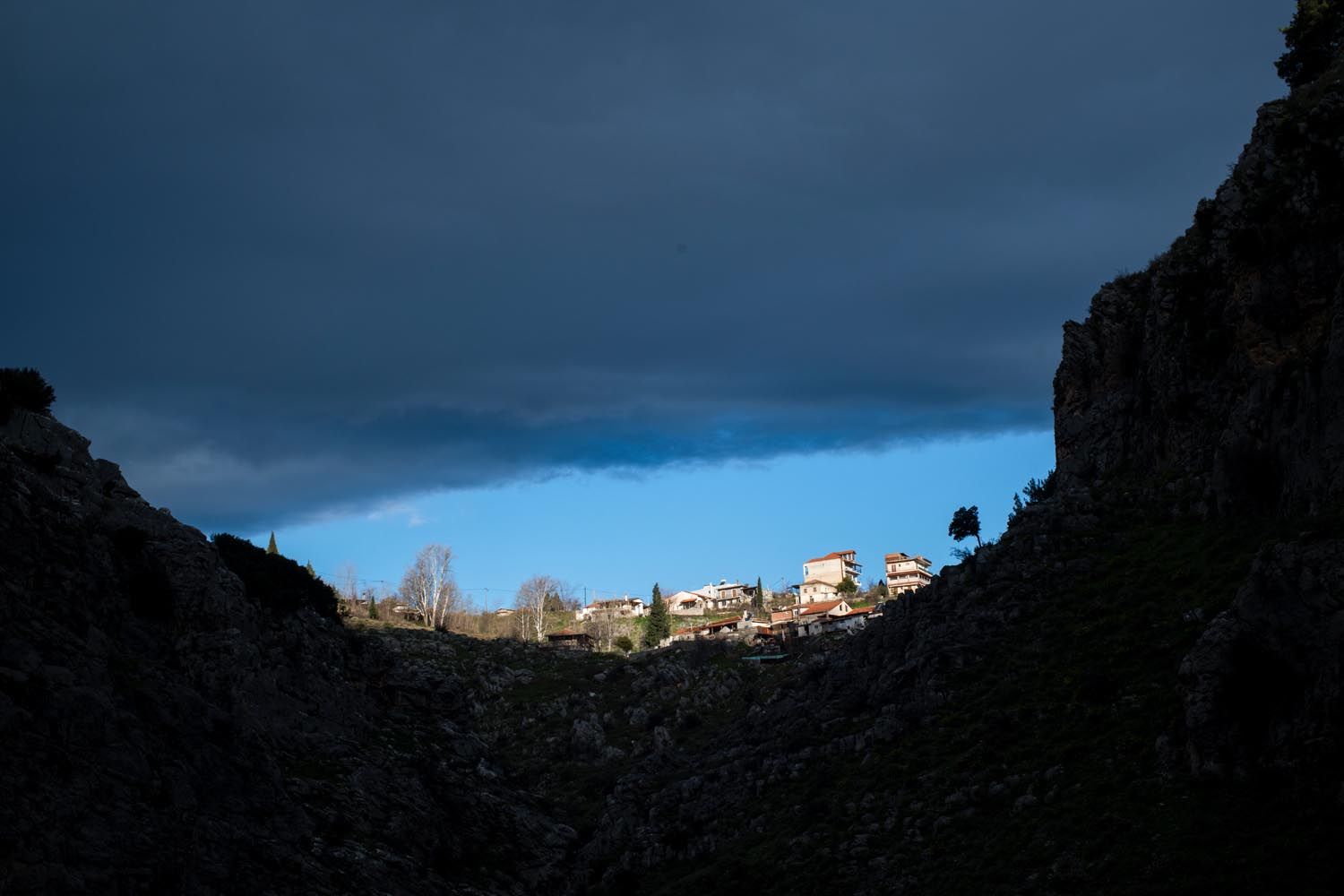 Η άκρη της πόλης όπως φαίνεται από το φαράγγι της Έρκυνας.