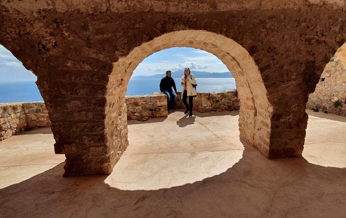 Σε κάθε περίπτωση, αξίζει να αφήσεις για λίγο τον άρτια διατηρημένο μεσαιωνικό κάτω οικισμό και να έρθεις εδώ ψηλά, απολαμβάνοντας νοητά ένα ταξίδι στο παρελθόν με θέα το απέραντο γαλάζιο του ουρανού και της θάλασσας. Γιατί όχι με ένα ποτήρι Μαλβαζία στο χέρι, το περίφημο γλυκό, λιαστό κρασί της Μονεμβασιάς.