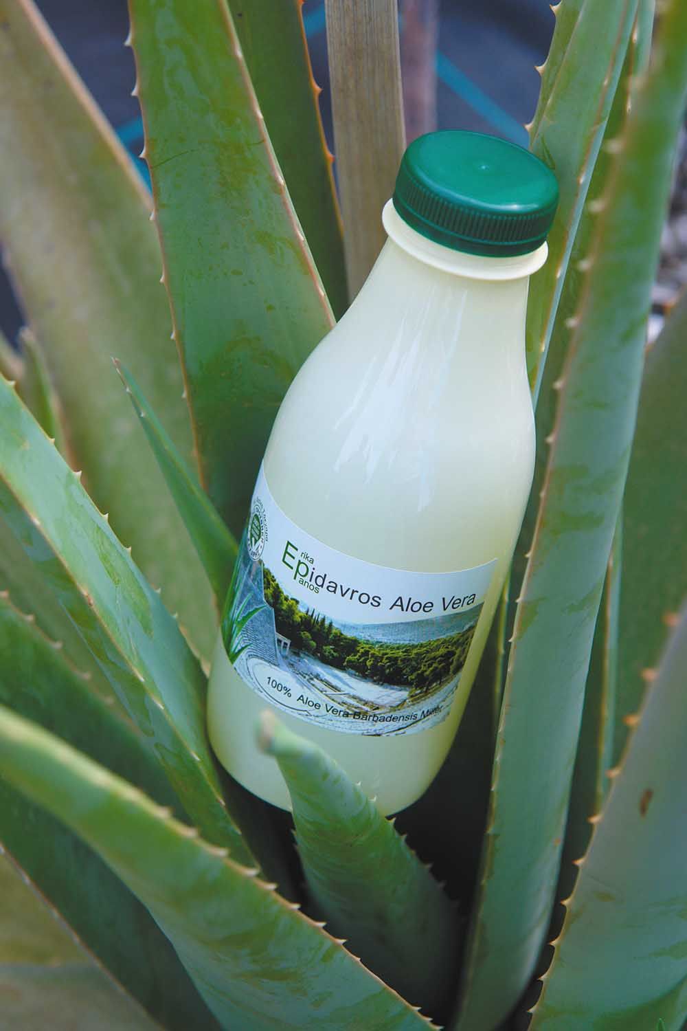 Στην Παλαιά Επίδαυρο επισκεφθήκαμε κι ένα κτήμα έξι στρεμμάτων όπου καλλιεργούνται συστηματικά φυτά αλόης. Η καλλιέργεια Aloe Vera Barbadensis Miller είναι πιστοποιημένη ως βιολογική με βάση τη ΔΗΩ. Τα προϊόντα που παράγονται μέχρι στιγμής είναι ο χυμός Epidavros Aloe Vera (100% χυμός Aloe Vera), το Aloe Serum day & night (για ενυδάτωση, δροσιά και σύσφιξη), καθώς και το Aloe After Sun Spray (για το πρόσωπο και το σώμα).
