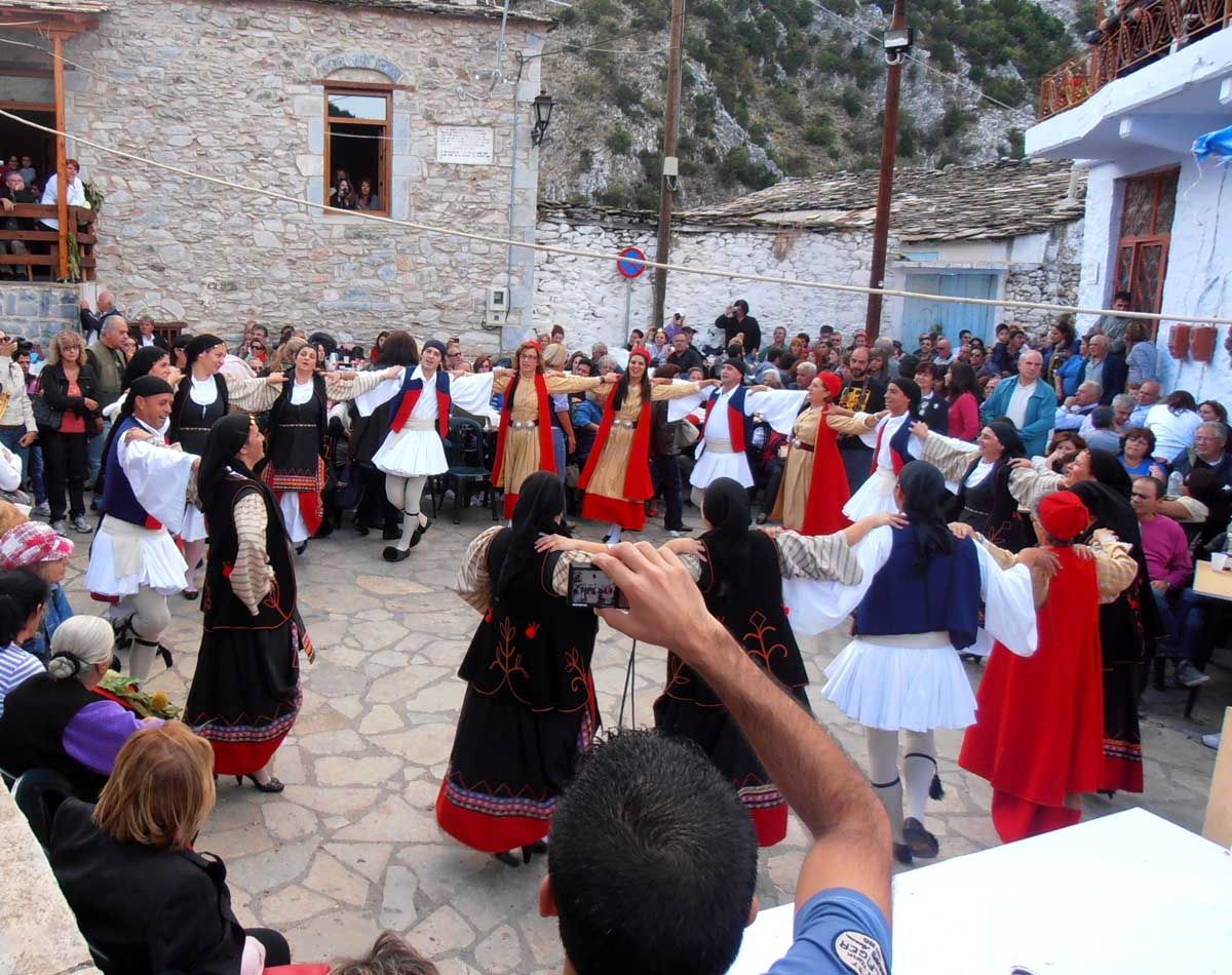 Η «αετοφωλιά του Πάρνωνα», όπως την αποκαλούν, είναι ένα κατάλευκο πέτρινο χωριό με εντυπωσιακά πυργόσπιτα και στέγες από σχιστόλιθο του Μαλεβού, που βρίσκεται χτισμένο στα 900 μ. υψόμετρο. Είναι ένα από τα αρχαιότερα ορεινά χωριά της Κυνουρίας· οι παλαιότεροι μάλιστα μιλάνε ακόμα τα Τσακώνικα, τα οποία προέρχονται από την αρχαία δωρική διάλεκτο. Γιατί όμως τα σπίτια του είναι βαμμένα στα λευκά; Παλαιότερα, λειτουργούσαν εδώ πάνω από 40 ασβεστοκάμινα! Μπορεί πλέον να μην είναι σε λειτουργία, όμως η παράδοση συνεχίζεται ως τις μέρες μας κι έτσι τα σπίτια, οι αυλές, οι εκκλησιές και οι μαντρότοιχοι εξακολουθούν να ντύνονται στα κατάλευκα! Μάλιστα οι «καμιναραίοι», όπως χαρακτηριστικά αποκαλούνταν οι ασβεστοποιοί που δούλευαν στο βουνό τον χειμώνα, δημιούργησαν ένα πολύ θρεπτικό φαγητό, το οποίο αποτελεί μέχρι σήμερα παραδοσιακό πιάτο του χωριού. Είναι η «παντρεμένη φασολάδα» με ζυμαρικά και δεν είναι παρά η παραδοσιακή μας φασολάδα που περίσσευε από την προηγουμένη, οπότε την αραίωναν με νερό και της πρόσθεταν μακαρόνια. Από χρόνια μακρινά, ο ευνοημένος αυτός τόπος περιβάλλεται από πυκνά δάση με καστανιές, από τις οποίες παράγονται κάστανα εξαιρετικής ποιότητας. Η σοδειά έφθανε άλλοτε και τους 500 τόνους, και το εμπόριο από τα κάστανα απέφερε σημαντικά έσοδα. Μεγάλες ποσότητες μετέφεραν οι αγωγιάτες με τα ζώα στο λιμάνι του Αγίου Ανδρέα, απ’ όπου έφευγαν με καΐκια για Ναύπλιο και από εκεί για Αθήνα, καθώς δρόμοι δεν υπήρχαν τότε... Φυσικά, τα κάστανα έπαιζαν πάντα «πρωταγωνιστικό» ρόλο στη διατροφή των κατοίκων, καθώς αφθονούσαν. Τα έψηναν, τα ξεφλούδιζαν και τα καθαρά τα ξαναέψηναν στον φούρνο μέχρι να σκληρύνουν αρκετά. Έπειτα, τα αποθήκευαν σε πάνινα σακούλια και τα φύλαγαν για τον χειμώνα, για να τα δίνουν στα παιδιά, να τα τρώνε στο σχολείο ή να τα παίρνουν οι άντρες μαζί στην τσέπη τους, όταν πήγαιναν στη δουλειά τους (για να τους κόβουν την πείνα, αλλά και γιατί έχουν πολλές πρωτεΐνες). Αυτά λέγονταν «αγγουρούλια» και μάλιστα κατά την Κατοχή τα έτριβαν στον μύλο και παρήγαν καστανάλευρο, το οποίο έσωσε πολλές οικογένειες από την πείνα, λόγω της μεγάλης θρεπτικής του αξίας. Αξίζει να σημειωθεί πως εκτός από την υψηλής ποιότητας πρωτεΐνη, τα κάστανα έχουν χαμηλά λιπαρά, ενώ είναι πλούσια σε μέταλλα, ασβέστιο και βιταμίνες. Έχουν πολύ υψηλή περιεκτικότητα βιταμίνης C και δεν περιέχουν γλουτένη.