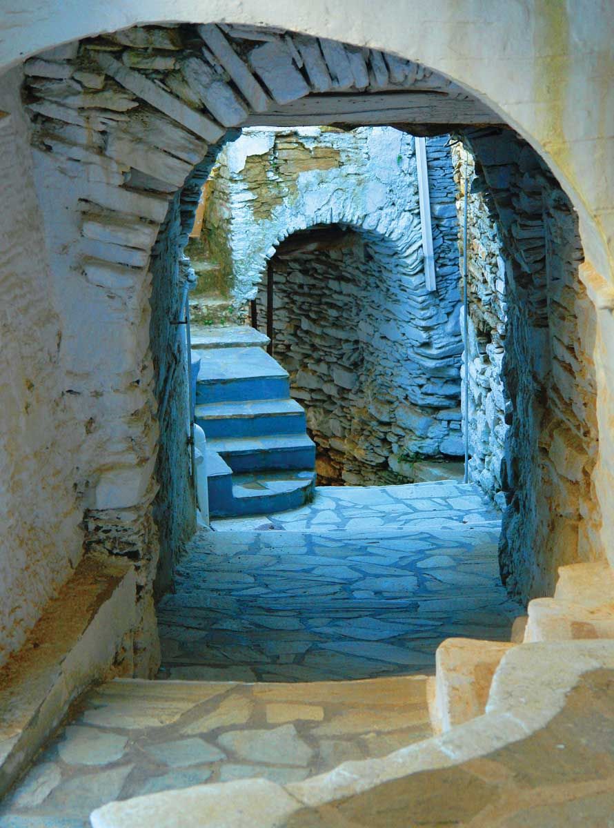 Η συνέχεια ήταν πιο… βουτυράτη, με επίσκεψη στο τυροκομείο San Lorenzo, στον Κέχρο της Τήνου (τηλ.: 22830 41549, 6972 881780), για να δοκιμάσουμε τα ονομαστά τυριά του νησιού (που θυμίζουν το «τυράκι της γιαγιάς»), όπως η γραβιέρα, η κοπανιστή, η νωπή μυζήθρα, το τηνιακό τυράκι (αλατισμένο), το μπαλάκι, το μαλαθούνι, το πέτρωμα (που χρησιμοποιείται στη χωριάτικη σαλάτα και στα πασχαλινά τυροπιτάκια). Μεγάλη ποικιλία παραδοσιακών τυριών, φρέσκο παστεριωμένο γάλα και φρέσκο βούτυρο θα βρούμε και στον Αγροτικό Συνεταιρισμό Τήνου (τηλ.: 22830 22323, 21184). Το περισσότερο γάλα για την παραγωγή τυριών προέρχεται από αγελάδες. Μάλιστα παλιά προερχόταν από την ντόπια αγελάδα, που χάθηκε στο πέρασμα των χρόνων. Το πέτρωμα είναι ένα φρέσκο τυρί ανάλατο, χειροποίητο, το οποίο αφού πήξει και στραγγίξει στα τυρόπανα, μπαίνει ανάμεσα σε δύο πέτρινες πλάκες, για να φύγουν τα υγρά του. Το ζυμώνουν με μυρωδικά και αλάτι, το πλάθουν σε μπαλάκια και το αφήνουν σε ειδική θερμοκρασία να ωριμάσει και να κιτρινίσει. Έτσι, παράγεται ένα πικάντικο σκληρό τυρί, που το λένε στρογγυλό (από το σχήμα του). Ωστόσο, μια αλλιώτικη γευστική εμπειρία μάς περίμενε και στο τυροκομείο της Αγγέλας Ρουγγέρη, στη Στενή της Τήνου, ανατολικά του βουνού Τσικνιά (τηλ.: 6948 259427). Στη μικρή πιστοποιημένη οικογενειακή μονάδα της ετοιμάζει τα καρίκια, με την ιδιαίτερη, πικάντικη γεύση, που φτιάχνονται με παλιά οικογενειακή συνταγή και τυρί πέτρωμα. Ωριμάζουν μέσα σε φλασκί (καρίκι) για 6 μήνες, αποκτώντας πλούσια γεύση, η οποία εντείνεται με την παλαίωση (μοιάζει με τη γεύση του ροκφόρ). Εδώ η Αγγέλα ετοιμάζει και τα τυριά μαλαθούνια (με γάλα, πιτιά και αλάτι), που μπαίνουν για μία ημέρα στην τυροβολιά (ένα καλαθάκι από βούρλα), για να πάρουν φόρμα και μετά στεγνώνουν στον αέρα, κρεμασμένα σε τουλπάνια. Στην καταπράσινη βεράντα της με την απίστευτη θέα δοκιμάσαμε τα τυράκια της με φρεσκοψημένο καρβέλι. Ήταν γευστική εμπειρία