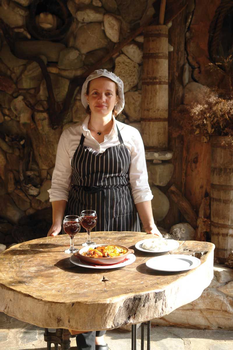 Μια αληθινή γευστική αποπλάνηση ζήσαμε και στην ταβέρνα «Κεραμαριό». Αξέχαστο θα μας μείνει το κουνέλι στιφάδο με τα μελωμένα κρεμμυδάκια και τα δαμάσκηνα, το οποίο ετοίμασε για μας με τέχνη περισσή η ιδιοκτήτρια κ. Κική. Δοκιμάσαμε ακόμη από τα χεράκια της πικάντικα σουτζουκάκια με κόκκινη σάλτσα και γιαούρτι πάνω σε φρεσκοψημένες πιτούλες, ψητή πατάτα με λιωμένα τυριά στον φούρνο, χοιρινό εξοχικό κλεισμένο στη λαδόκολλα και παραδοσιακές πίτες (τυρόπιτα, πλαστό). Καθώς απολαμβάναμε το φαγητό μας, από τα παράθυρα της ταβέρνας χαζεύαμε ένα κοπάδι με ελάφια να βόσκουν αμέριμνα στο μεγάλο κτήμα 30 στρεμμάτων, όπου βρίσκονταν και τα 11 πέτρινα παραμυθένια σπιτάκια του, φτιαγμένα με ποταμίσια βότσαλα, κορμούς δέντρων και το πολύ ιδιαίτερο γούστο του Δημήτρη Σταμούλη και της συζύγου του Κικής (τηλ.: 24450 61470, www.keramario.gr). Για γλυκό, απολαύσαμε λαχταριστούς αφράτους λουκουμάδες, περιχυμένους με λιωμένη σοκολάτα. Ό,τι καλύτερο για να κλείσει γλυκά το πλούσιο γεύμα μας. Δίπλα στο αναμμένο τζάκι όλα μοιάζουν μαγικά και ονειρεμένα!
