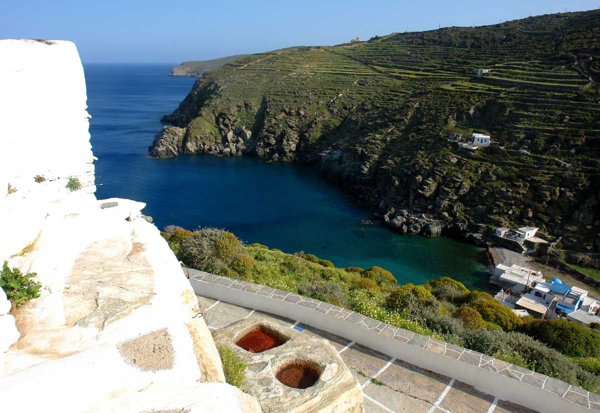 Γειτονοπούλα με τη Σέριφο, την Κίμωλο και την Αντίπαρο, η Κυκλαδίτισσα Σίφνος ερωτοτροπεί με το Αιγαίο από χρόνια μακρινά… Μελετώντας την ιστορία της και την πορεία της στον χρόνο, έμαθα πολλά γι’ αυτήν. Λέγεται, λοιπόν, πως ο θεός Απόλλωνας την ερωτεύτηκε και της χάρισε απλόχερα τη λάμψη και το φως του. Στο διάβα του χρόνου, πολλοί ήταν και οι επίδοξοι κατακτητές της. Στο Αρχαιολογικό Μουσείο Αγίου Ανδρέα (τηλ.: 22840-31022) ξεδιπλώνεται η πολυτάραχη διαδρομή της στον χρόνο. Ωστόσο, στα χρόνια που ακολούθησαν, άξιοι αρχιτέκτονες και τεχνίτες την στόλισαν με χωριά μοναδικά. Το ανάγλυφο τοπίο της και το υψηλής αισθητικής δομημένο περιβάλλον της πριμοδότησαν τη Σίφνο με ιδιαίτερη γοητεία και την έκαναν να ξεχωρίζει από τα άλλα νησιά των δυτικών Κυκλάδων. Εκτός από την εξαιρετική κουζίνα της, φημίζεται και για τα παραδοσιακά κεραμικά της. Στο νησί υπάρχουν πολλά εργαστήρια με κεραμικά. Μια επίσκεψη στο Εργαστήριο Αγγειοπλαστικής του Γιάννη Ναρλή, στο Κάτω Πετάλι (τηλ.: 22840-33909), μου αποκάλυψε τη μαγεία της τέχνης του, καθώς παρακολούθησα από κοντά πώς φτιάχνονται με αγάπη και σεβασμό στη σιφνέικη παράδοση τα περίφημα κιούπια, τα τσικάλια, οι φλάροι, οι στάμνες και τα λαΐνια. Άλλοτε λειτουργούσαν στο νησί πάνω από διακόσια εργαστήρια αγγειοπλαστικής! Σήμερα, η τέχνη αυτή μεταφέρεται από γενιά σε γενιά…