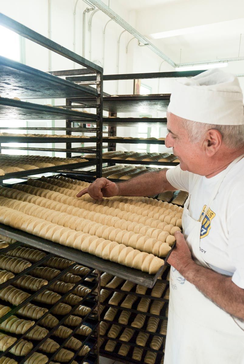 Αν και δεν έπρεπε να μας εντυπωσιάζει, ο μεγαλύτερος καταναλωτής του Κυθηραϊκού ελαιόλαδου είναι οι τοπικοί φούρνοι που παράγουν το πιο διάσημο παραδοσιακό προϊόν των Κυθήρων, το λαδοπαξίμαδο. Αυτό παρασκευάζεται με λευκό αλεύρι, που ζυμώνεται μαζί με εξαιρετικό παρθένο ελαιόλαδο, νερό, μαγιά κι αλάτι, δημιουργώντας ένα παξιμάδι αφράτο και τραγανό με ξεχωριστή γεύση γεμάτη αρώματα ελιάς! Την ιδιαίτερη σχέση των δύο προϊόντων, ελαιολάδου και παξιμαδιο, έχει αναδείξει με ιδιαίτερο τρόπο η οικογένεια Κορωναίου στο χωριό του Καραβά. Εδώ, ο Γιάννης Κορωναίος μετέτρεψε το παλιό λιοτρίβι του πατέρα του, που είχε σταματήσει να λειτουργεί από το 1964, σε ένα σύγχρονο και πραγματικά πρωτότυπο αρτοποιείο. Μπαίνοντας στον χώρο του καταστήματος, βρίσκεσαι ανάμεσα στα μηχανήματα ενός παραδοσιακού ελαιοτριβείου, όπως το παλιό «παχνί» με τις μυλόπετρες που γύριζαν τα ζώα για να αλέσουν τις ελιές και τα πιεστήρια στα οποία τοποθετούνταν η ελαιοζύμη ανάμεσα σε «ντορβάδες» ή «τσαντίλες» για να ξεχωρίσουν το ελαιόλαδο. Εδώ βρίσκεις κουλουράκια, αρτοποιήματα, αλλά κυρίως παξιμάδια όλων των ειδών και μεγεθών και για όλα τα γούστα, τα περισσότερα με παραδοσιακά συστατικά του νησιού. Παξιμάδια με ελιά και ρίγανη ή με θυμάρι και ντομάτα ιδανικά για νόστιμους μεζέδες, αλλά και παξιμάδια πορτοκαλιού ή με μέλι και αμύγδαλο για να συνοδεύσουν τον καφέ σου.