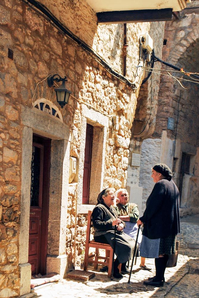 "Ερημώσαμε, κόρη μου. Πάλι καλά που 'χουν πάρει οι ξένοι κάποια σπίτια και έρχονται το καλοκαίρι και ζωντανεύει λίγο το χωριό. Κρατάμε τα κεφάλια μας να μην πέσουν".