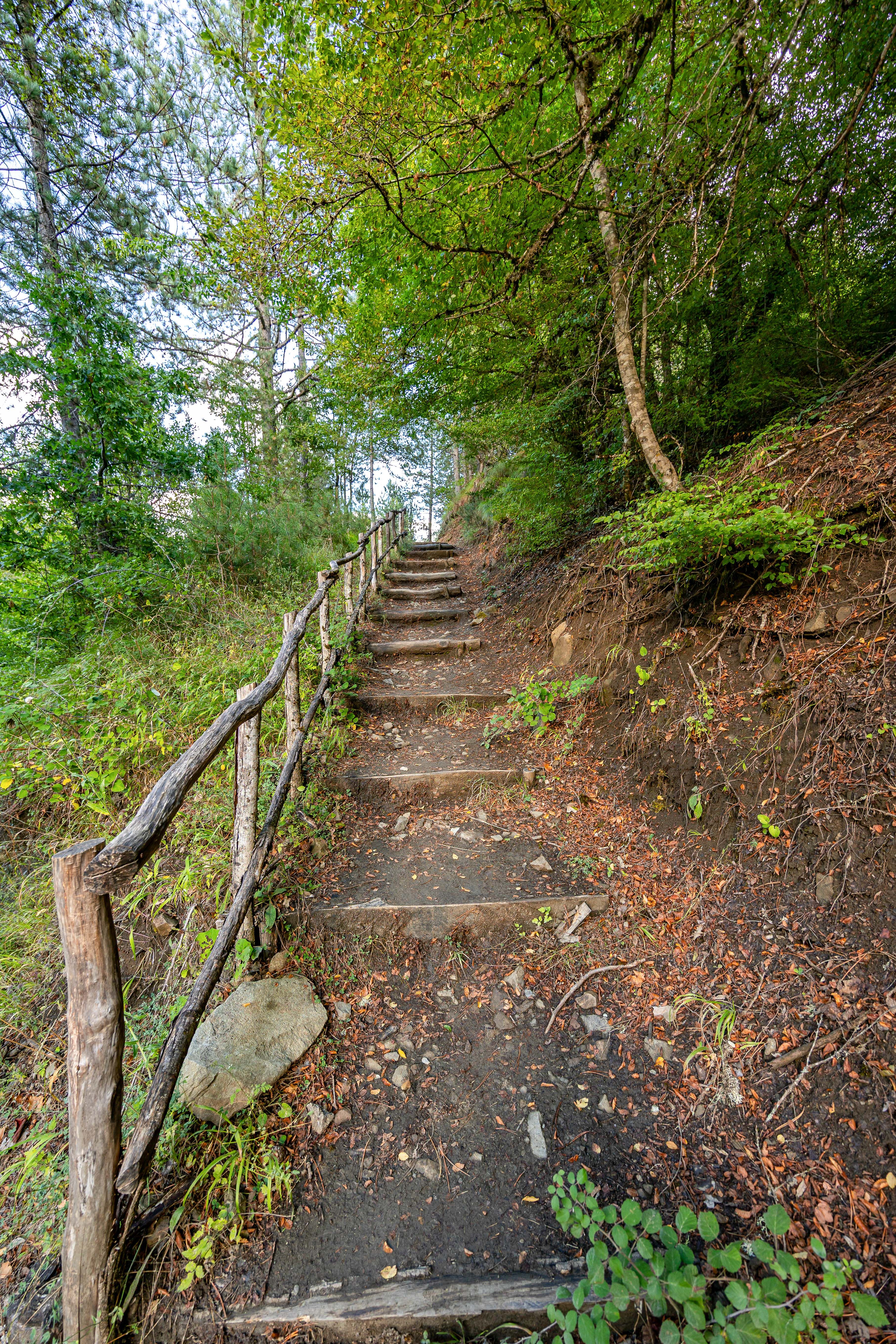 κάτω, το μονοπάτι άρχισε να κατηφορίζει. Τα ξύλινα στηθαία,