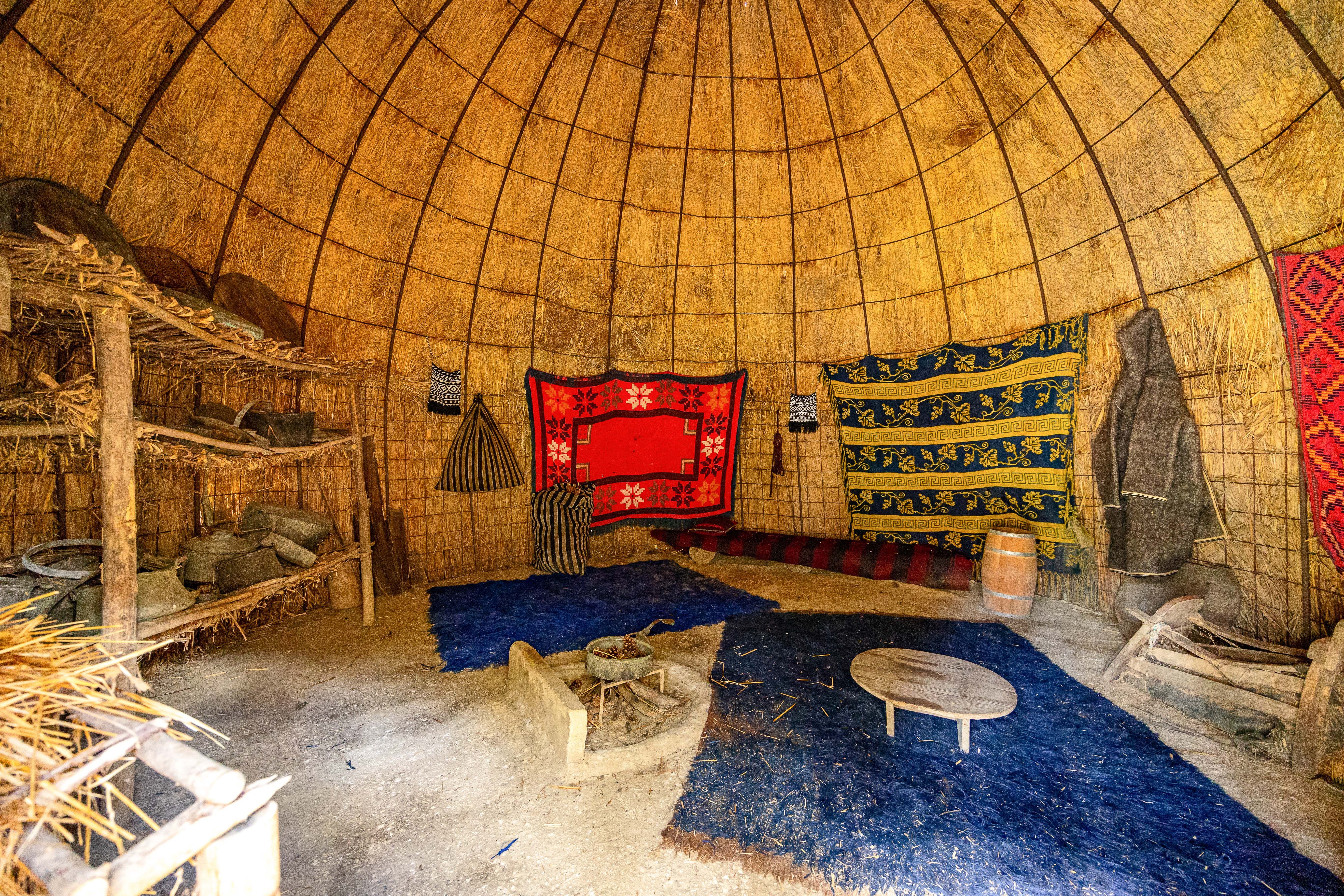 Οι καλύβες των Σαρακατσάνων μοιάζουν να ξεπηδούν από τη γη, σαν να τις γέννησε το ίδιο το τοπίο.