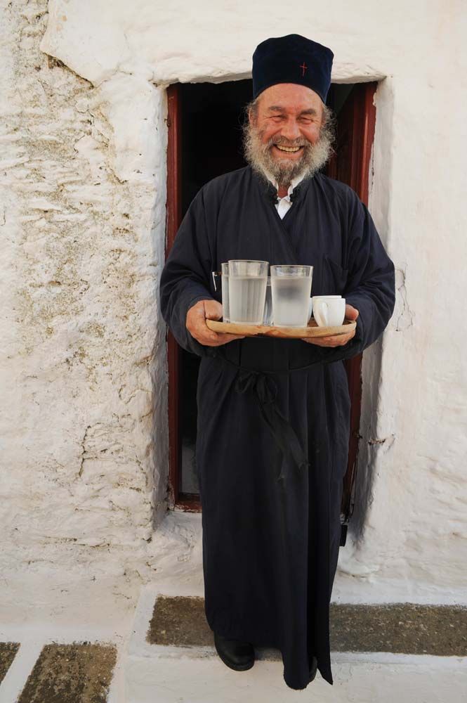 Ρουφώ διαλογιστικά τον ελληνικό καφέ πάνω στο κύµα σε ένα από τα καφενεία και ξυπνώ µε µια βουτιά καληµερίσια στην παραλία του Αυλόµωνα. Εξορµώ βορειοανατολικά προς την παραλία Λια, χωρίς ρούχα, και στη διπλή αµµώδη παραλία Άγιος Σώστης αψηφώντας το βοριαδάκι. Έξω από τον βυθό προβάλλει το ξωκλήσι του Αγίου, προσκαλώντας µε στο πανηγυράκι αποβραδίς της παραµονής της 6ης Σεπτεµβρίου µε φάβα και καλούδια. Συνεχίζοντας βόρεια στην περίφηµη Ψιλή Άµµο, βουτιά, µαραθοκεφτέδες και τηγανιά «λουκούµι» σε ένα από τα δυο θρυλικά ταβερνάκια. Ακάθεκτη, µε δόνηση υψηλή στην ξανθή άµµο του Αγίου Ιωάννη, ακολουθώ τον περιφερειακό δρόµο. Με εµπιστοσύνη στην αθωότητα, χωρίς σκεπτικισµό βρίσκοµαι µες την όαση του οικισµού Καλίτσος ή Κένταρχος. Η δοξασία λέει ότι πάνω από τον οικισµό βρέθηκε τάφος Ρωµαίου εκατόνταρχου. Αγριελιές, λεύκες, σκιές, µια τρεχούµενη πηγή. Κατεβαίνω στον ορµίσκο των καταγάλανων νερών. Λίγο πριν το µοναστήρι, βουτιά στην έρηµη αµµουδιά Πλατύς Γιαλός, δύο χιλιόµετρα εκτός δρόµου και µια µπουκιά θαλασσινού µεζέ στο ταβερνάκι. Αριστούργηµα σιωπής µε τη Γυάρο στη µέση του πελάγους… Στον κεντρικό δρόµο επιβλητικά ξεπροβάλλει το λιτό καστροµονάστηρο των Ταξιαρχών (1572) µε τις ιστορικές πολεµίστρες για τον εκδιωγµό των πειρατών. Μέχρι πέρυσι και για 60 έτη, το χαµόγελο του πάτερ-Μακάριου άνοιγε την πορτούλα φιλόξενα. Ανακαίνισε τη µονή µε σθένος, τον λαχανόκηπο, το λαογραφικό µουσείο, το αµπάρι. Μυσταγωγική η λιτανεία του Επιταφίου. Καλόγεροι παλαιότερα είχανε καΐκι και παραγωγή οίνου. Ποιος νοικοκύρης µένει χωρίς το βαρελάκι του στη Σέριφο; Θεσπέσιο το επισκέψιµο Οινοποιείο του Χρήστου Χρυσολωρά στην πλαγιά του Προφήτη Ηλία, όπου δοκιµάζω κρασιά τοπικών ποικιλιών.