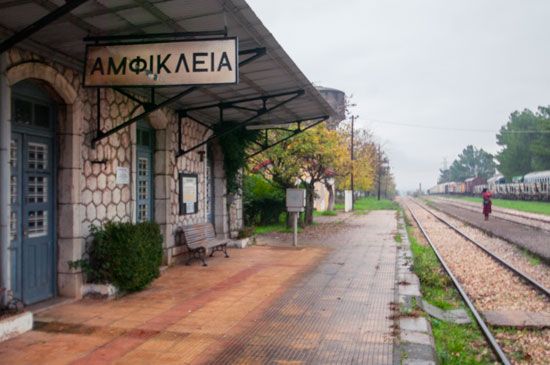 Τελευταίος σταθμός, ο παλιός σιδηροδρομικός σταθμός της Αμφίκλειας, που αν και η νέα ταχεία για Θεσσαλονίκη τον έπαυσε για λίγο, σήμερα επαναλειτουργεί κάνοντας δύο στάσεις, εξυπηρετώντας όλα τα χωριά της περιοχής. Το σκηνικό, με τα παλιά βαγόνια να στοιχειώνουν με χρώμα και σκουριά τον χειμώνα, αποτελεί από μόνο του ένα τουριστικό αξιοθέατο. Πολύ κοντά του, στην περιοχή Άνω Καλύβια, απλώνεται η πεδιάδα του ποταμού Κηφισού. Κάποτε στέκονταν αγέρωχοι 15 μύλοι. Σήμερα μόνο ένα τοξωτό γεφύρι κάτω από τις ατελείωτες ασημένιες γραμμές του τρένου, φαντάζει παραμυθένιο. Καθώς βυθίζομαι στη λασπουριά του κάμπου, πίσω απ' την ομίχλη των νεφών, πέρα απ' το διάφανο της βροχής κι ανάμεσα στο πυκνό χορτάρι, ξεπροβάλλει ένας βοσκός με το κοπάδι του. Πρώτα πρώτα, τα σκυλιά να μας εμπιστευτούν και ξάφνου όλο το τοπίο μεταμορφώνεται αγγελοπουλικά. Το σφύριγμα ενός παλιού τρένου σπάει τη θανατερή σιωπή και η ταχεία της ιστορίας φρενάρει μπροστά μας. Στάση παρόν. Το παρελθόν παρακαλείται προς αποβίβαση. Χαιρετισμός με τη διαχρονική μορφή του βοσκού και στο πρόσωπό του βλέπω τον περιθωριακό φιλόσοφο του σήμερα. Αυτόν που με το κεφάλι ψηλά, όσο η γη τρέφει τα ζωντανά, κλώθει τις σκέψεις του με τα σύννεφα τ' ουρανού, σε ευθύ διάλογο με τον Θεό. Είναι ο παλιός Δαδιώτης που κουβαλάει στην κάπα του μοναδικό εφόδιο την παράδοση του τόπου του, γιατί ξέρει καλά πως στα μέρη του μονάχα σαν κοιτάς πίσω μπορείς και πας μπροστά και μιας και οι γιορτές πλησιάζουν, δαδιώτικα και τσοπάνικα θα ευχηθώ μαζί του, σπάζοντας ένα ρόδι στη στάνη «όσα σπυριά, τόσα αρνιά, τόσα καλά…»