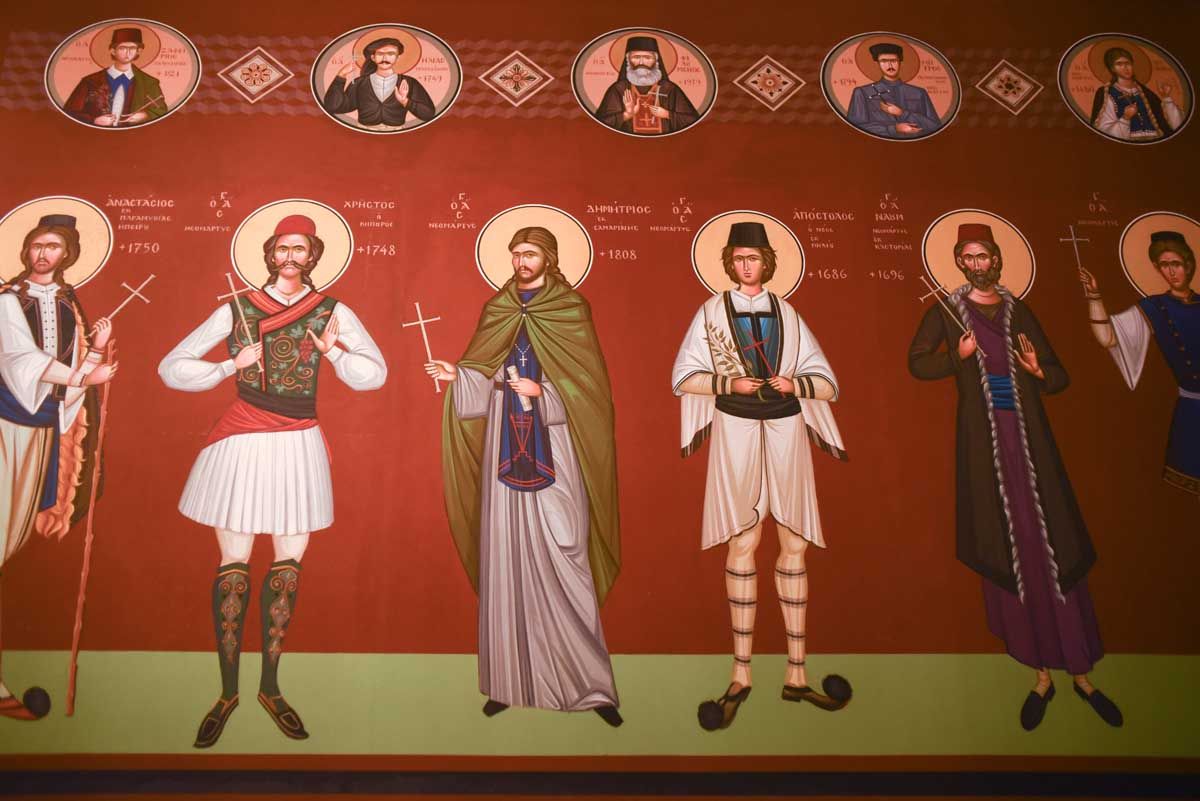 Στον ναό του Αγίου Νικολάου, οι τοίχοι είναι αγιογραφημένοι με υπερφυσικούς αγίους, ντυμένους με παραδοσιακές φορεσιές.