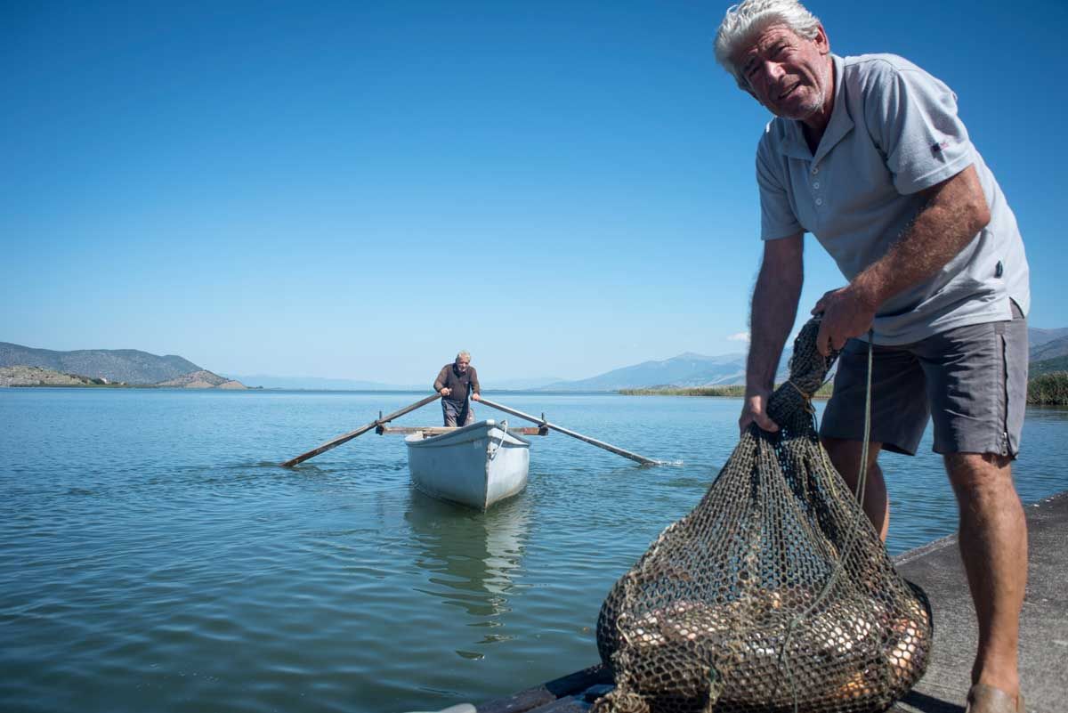 Ο Άγιος Γερµανός αποτελεί ιδανική επιλογή διαµονής για την εξερεύνηση των Πρεσπών. Εδώ, µια ονειρική βαρκάδα µας ξεναγεί στα ασκηταριά και τις βραχογραφίες τους, ενώ µια γευστική περιπλάνηση µε γριβάδια και χίλια άριστα πιάτα µας περιµένει στην παραλιακή ταβέρνα «Η Συντροφιά» του… βαρκάρη µας, Γερµανού Χριστιανόπουλου, στο χωριό Ψαράδες. Στον Άγιο Αχίλλειο, πριν ανατείλει ο βασιλιάς του φωτός, σαλπάρουµε µε µια βάρκα µέσα στη σιωπή της λίµνης. Αρνητικά προσδοκώ τη βουή της µηχανής, µάταια όµως. Ο δήµος διαθέτει δωρεάν δύο ηλιακές βάρκες. Ο φιλοσοφηµένος βαρκάρης µας Αποστόλης Καλλιώρας µας φροντίζει, πηγαίνοντας µας σε αποικίες κορµοράνων µες τους ζαλιστικούς καλαµιώνες. «Ο καθένας έρχεται µε την ιστορία του και αποστολή µου είναι να τον εντάξω στο τοπίο, δίνοντας του µια µατιά απελευθέρωσης από τις εντάσεις της πόλης». Ο ίδιος, αφού έκανε την περισυλλογή του για πολλά χρόνια σε έναν ανείπωτα σκληρό και πειθαρχηµένο χώρο της λεωφόρου Αλεξάνδρας, ήρθε στις Πρέσπες ακολουθώντας το µονοπάτι του ονείρου του. «Τις εικόνες που έβλεπα στο Discovery channel, τις έχω πια στην πραγµατικότητά µου», µας λέει στον γύρο του νησιού που είναι γεµάτο Βυζαντινές εκκλησιές. Γύρω από το Βιδρονήσι το σκηνικό µεταµορφώνεται από Νάρνια σε Χιτσκοκικό. Στο νησί κατοικούν µόνο κορµοράνοι πάνω σε δέντρα καµένα από τις κουτσουλιές. «Η φύση συνεννοείται µε τον εαυτό της κι εµείς συµµετέχουµε», τονίζει ο Αποστόλης. «Ακούγοντας τα στοιχεία της φύσης ακούµε τον εαυτό µας. Στη λίµνη, στους λόφους, στο δάσος παραδινόµαστε στη διαφορετικότητα του ίδιου του Οικοσυστήµατος…» Γιατί δυσκολευόµαστε άραγε στα υπόλοιπα;