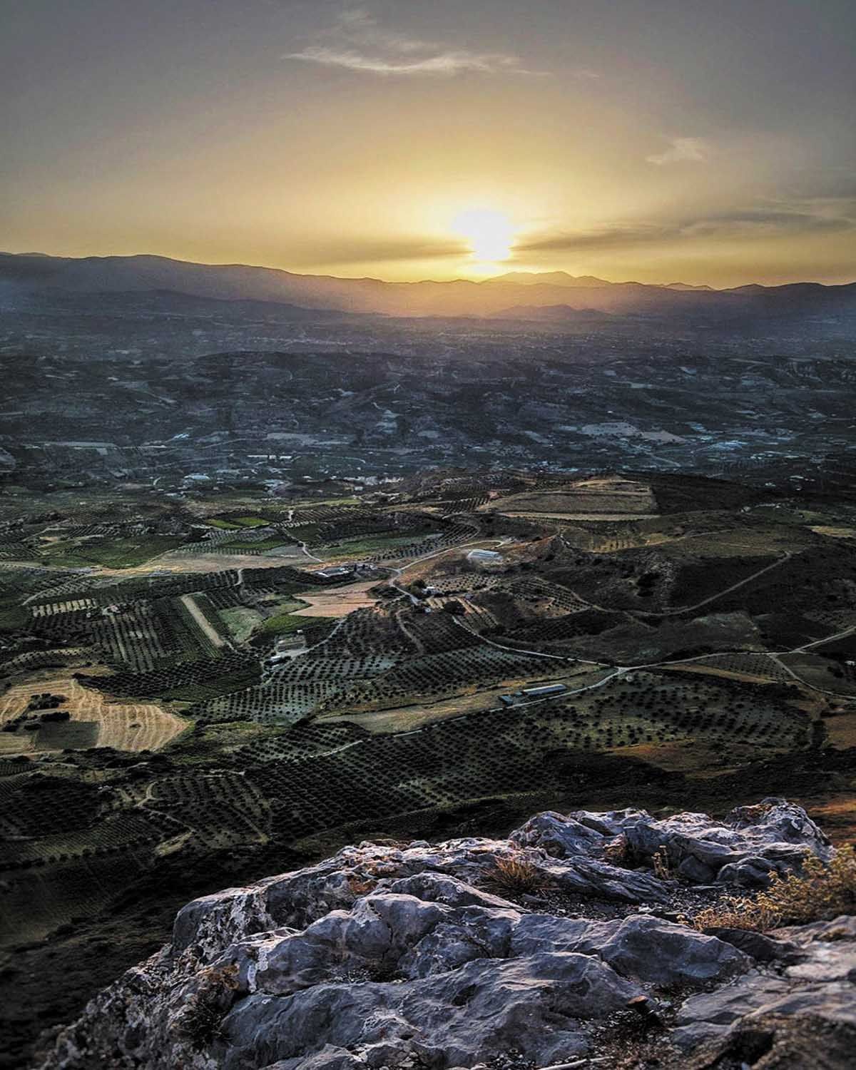 Στα χέρια μου κρατώ ένα βιβλίο: Αναφορά στον Γκρέκο. Στο σκληρό του εξώφυλλο η μορφή του Καζαντζάκη να με παρατηρεί. Τα διαπεραστικά φλογοβόλα μάτια του με κοιτούν με εμφανή περιέργεια. Την ίδια περιέργεια έχω κι εγώ. Έχω επισκεφθεί πολλές φορές την τουριστική βόρεια ακτή του Ηρακλείου, όπως και την άγρια ξερή ερημική ομορφιά στον Νότο, αυτήν που βρέχεται από το Λιβυκό πέλαγος και μυρίζει Αφρική. Η ενδοχώρα ήταν πάντα ένα πέρασμα που έκρυβε επιμελώς μια άγνωστη ιστορία. Μια ιστορία πολιτισμού. Έναν αγώνα ανάμεσα στους ανθρώπους και τη γη. Έναν διάλογο μεταξύ μουσικής και επιβίωσης. Έναν διάλογο σαν αυτόν που έχω αρχίσει κι εγώ τόσην ώρα με τον Καζαντζάκη. «Όμορφη που ’ναι η Κρήτη. Όμορφη! Ε και να ’μουνα αετός να την καμάρωνα απ’ την κορφή του αέρα!» Σ’ αυτή την κορφή οδηγούμαι. Όρος Γιούχτας. Ανηφορίζω ασθμαίνοντας, μα οι μυρωδιές από το δίκταμο, τα πρινάρια, τον έβενο και τα βότανα με ξυπνούν. Γύπες κράζουν από πάνω μου, ενοχλημένοι από την παρουσία μου. Επιβλητικοί. Όπως και η θέα, όταν φτάνω στην κορυφή. Στον Βορρά, μεγαλοπρεπής η πόλη του Ηρακλείου, ο Χάνδακας ή Κάντια, ανάλογα τους κατακτητές της. Δυτικά στέκει ο Ψηλορείτης και στους πρόποδές του ελαιώνες και αμπελώνες, όπως και στα ανατολικά. Τις τελευταίες δεκαετίες τα ξακουστά αμπέλια της ενδοχώρας μειώνονται και αντικαθιστώνται από τις πιο εύχρηστες ελιές. «Ένα παλιοκούτσουρο πετάει βλαστούς, κρέμουνται κάτι ξερά μπιχλιμπίδια, κι ο καιρός περνάει, ο ήλιος τα ψήνει, γίνουνται γλυκά σαν το μέλι και τα λέμε σταφύλια· τα πατούμε, βγάζουμε το ζουμί τους, το βάζουμε στα βαρέλια, βράζει μοναχό του, το ανοίγουμε του Αϊ-Γιώργη του Μεθυστή τον Οχτώβρη, και βγαίνει κρασί. Τι θάμα είναι πάλι αυτό; Το πίνεις το κόκκινο αυτό ζουμί κι η ψυχή μεγαλώνει». Είναι απίστευτο πόσο απότομα κόβεται το βουνό και από τα 811 μέτρα υψόμετρο βλέπεις κατευθείαν κάτω τους πρόποδες. Ιστορίες αυτοκτονιών και δολοφονιών κρύβουν αυτοί οι βράχοι. Μαζί κρύβεται και μια ενέργεια μεταφυσική, που δεν μπορείς να αγνοήσεις. Είναι ο λόγος που στον άγριο τούτο τόπο διάλεξαν οι Μινωίτες να κατασκευάσουν ένα από τα ξακουστά τους ιερά κορυφής, και σήμερα εκεί σεβαστικά ο επισκέπτης να αντικρίζει τον ναό του Αφέντη Χριστού. Πρώτη φορά βλέπω τετράκλιτη εκκλησία, από τις ελάχιστες που υπάρχουν ακόμα στον ελλαδικό χώρο. Συντροφιά στον Δία που, σύμφωνα με τον μύθο, κείτεται στο όρος αυτό δίνοντας τη μορφή του, καθώς κοιτάς το πιο ψηλό σημείο. «Κάπου κάπου γρικούσες ένα μωρό να κλαίει, ένα σκυλί να γαβγίζει, μια φωνή ανθρώπου, με ευτύς όλα πάλι βουβούνονταν και δεν άκουγες παρά τη φωνή του Θεού, τη σιωπή».