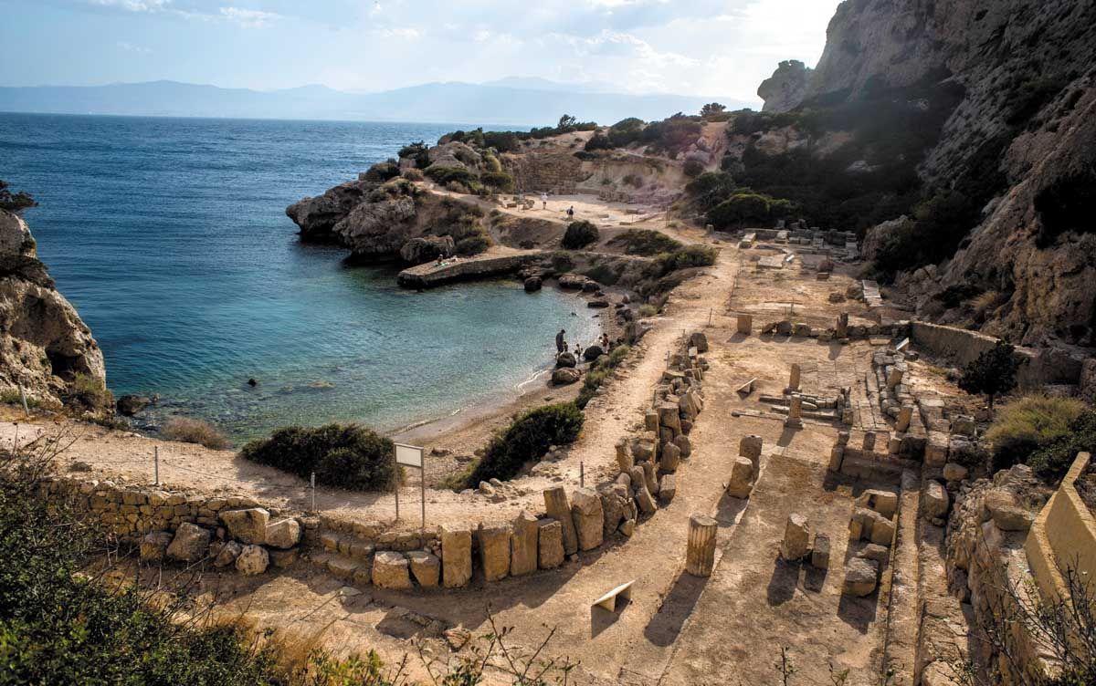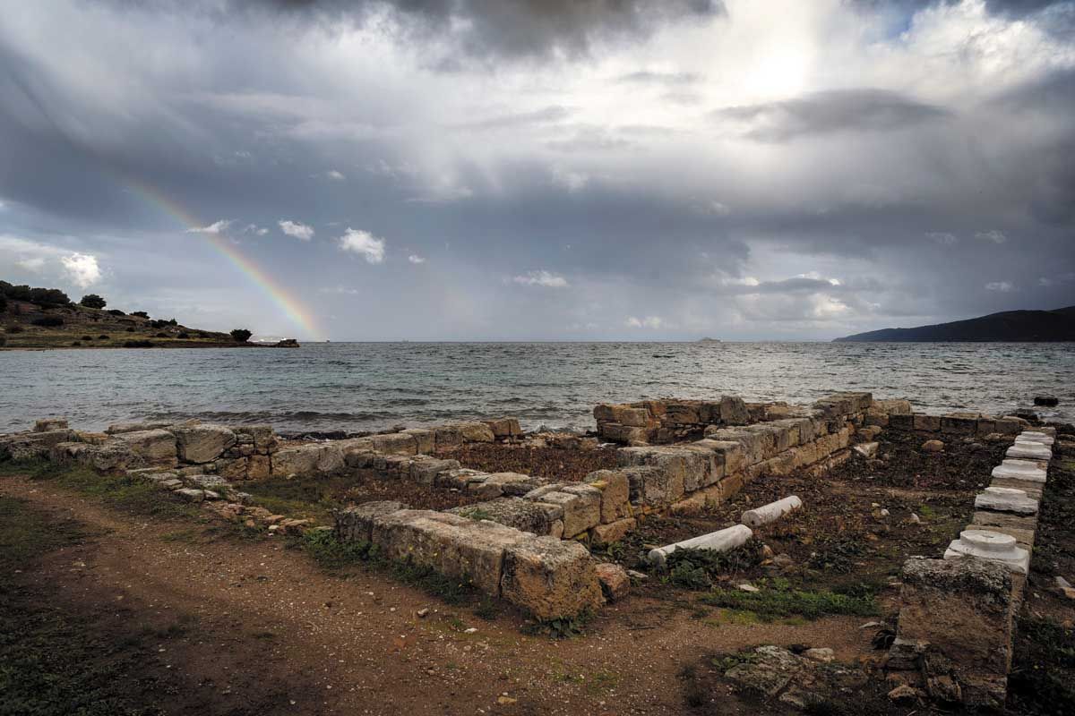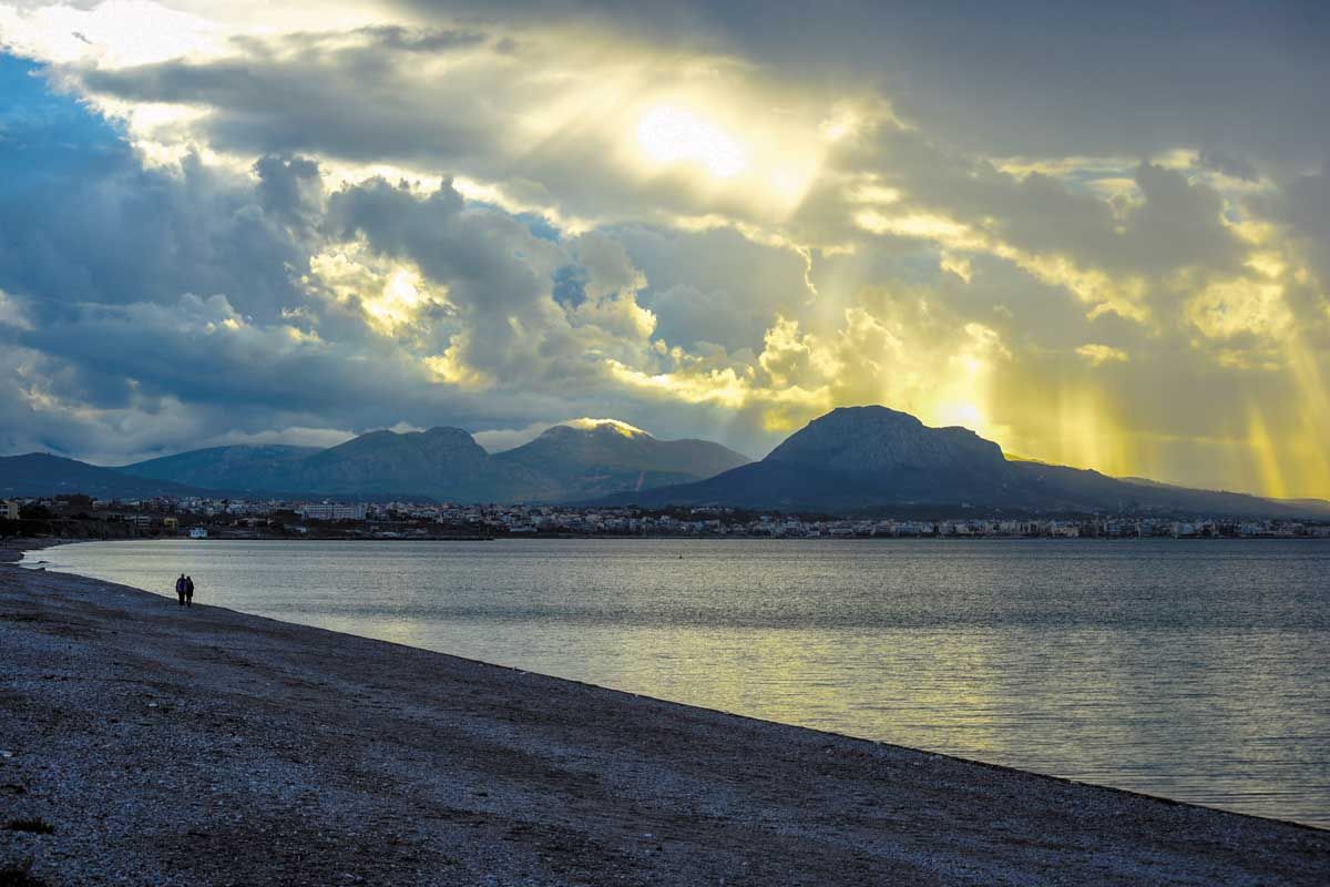 «Θερμά» λεγόταν κάποτε το Λουτράκι, η αρχαία πόλη με προστάτιδα την Άρτεμη Θερμία. Τα θαυματουργά λουτρά, όπως αναφέρει στο έργο του Ελληνικά (ΙV) o Ξενοφώντας, τα επισκέπτονταν οι στρατιώτες Σπαρτιάτες μετά τις μάχες για ξεκούραση, αναζωογόνηση και επούλωση των πληγών τους. Πάντοτε θεραπευτικός σταθμός και κοιτίδα του θερμαλισμού με τα υπερσύγχρονα σπα με τα τζακούζι, όπου ρέει το ιαματικό νερό. Αξίζει μια διανυκτέρευση στη λουτρόπολη με τη ρετρό αίγλη για χαλάρωση πλάι στο κύμα. Όμως το Λουτράκι δεν τελειώνει εδώ. Στη λίμνη Ηραίου ή Βουλιαγμένης, λίγα χιλιόμετρα βορειοδυτικά του οικισμού, σώζονται τα ερείπια του περίφημου ιερού της Ήρας, που προβάλλουν επάνω σχεδόν στη θάλασσα, καθώς παίρνεις το μονοπάτι στα αριστερά και ανηφορίζεις το ύψωμα που οδηγεί στον φάρο του ακρωτηρίου Μελαγκάβι ή Περαχώρας, από τους μεγαλύτερους φάρους του Κορινθιακού. Ο τόπος αποπνέει γαλήνη και ιερότητα, και αποτέλεσε στο παρελθόν ένα ακόμη λιμάνι των Κορινθίων, που το χρησιμοποιούσαν για να ελέγχουν την κίνηση του Κορινθιακού. Υπάρχουν αρχαιολογικά ευρήματα δύο ιερών, αφιερωμένων στην Ήρα Ακραία και στην Ήρα Λιμενία. Το 800 π.Χ. οικοδομείται ο πρώτος αψιδωτός ναός της Ήρας, ο οποίος δεν σώζεται. Τον 6ο αιώνα ανεγείρεται δυτικότερα δωρικός ναός της θεάς και βωμός με γλυπτό διάκοσμο στον οποίο κατέφυγε η Μήδεια για να φονεύσει τα παιδιά της. Δυτικότερα, κοντά στον ναό, βρέθηκε χώρος που μοιάζει με αγορά και είχε θρησκευτική και εμπορική χρήση, κάτι σαν σημερινό πανηγύρι. Με έναν τελευταίο παραλιακό περίπατο από το Λουτράκι καταλήγουμε στον Ισθμό, όπου απολαμβάνουμε τη φωτισμένη διώρυγα να «κρέμεται» πανοραμικά κάτω από τα πόδια μας. Αναλογίζομαι τη δύναμη, την ενέργεια και τη νοσταλγικότητα του τόπου. «Ο Ισθμός, παιδί μου, απεικονίζεται με τη μορφή θεϊκής οντότητας που ξαπλώνει ολόκληρη στο έδαφος και η φύση τής έχει ορίσει να κείτεται ανάμεσα στο Αιγαίο και στην Αδριατική σαν γέφυρα που ενώνει τα δύο πελάγη...» λέει ο κύριος Παπαφωτίου, καθώς μας δείχνει στο βιβλίο του φωτογραφίες των τοπικών νομισμάτων της Αρχαίας Κορίνθου.
