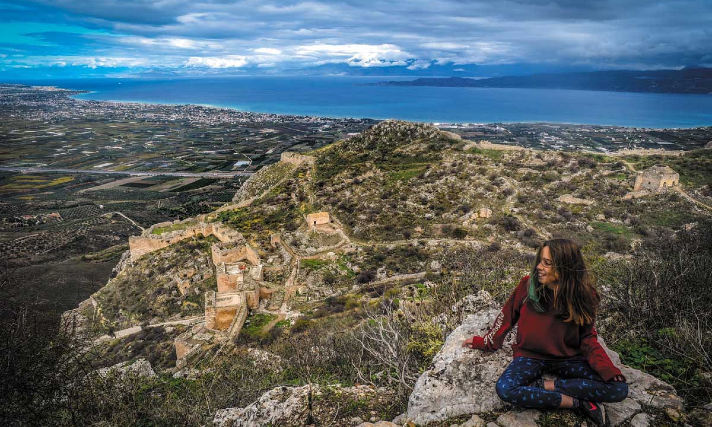 Πίσω από την Κόρινθο, υψώνεται οχυρωμένη η ακρόπολή της, ο Ακροκόρινθος, ένα από τα μεγαλύτερα και παλαιότερα κάστρα της Πελοποννήσου. Θυμάμαι τον εαυτό μου μικρή να το ατενίζω μέσα από το αμάξι διασχίζοντας την εθνική οδό. Φάνταζε πελώριο, παραμυθένιο. Ένας τόπος τόσο κοντά στην Αθήνα περιμένει να μας αγκαλιάσει με την ιστορία του, τη θέα, την ενέργεια και τους μύθους του. Ένας επιβλητικός λόφος επάνω στον οποίο πρωτοχτίστηκε ο οικισμός Εφύρα –πριν από την εποχή του Περίανδρου– εξελίχθηκε στην πάμπλουτη Κόρινθο. Λόγω του λιμανιού της στο Λέχαιο και του δίολκου, που για τη διέλευση των πλοίων καταβάλλονταν διόδια, στην Κόρινθο υπήρχε άφθονος πλούτος. Στην Ιλιάδα του Ομήρου η πόλη αναφέρεται ως «αφνειός» (δηλαδή πλούσια) και δεν μπορούσε να κατοικήσει εκεί κάποιος φτωχός.