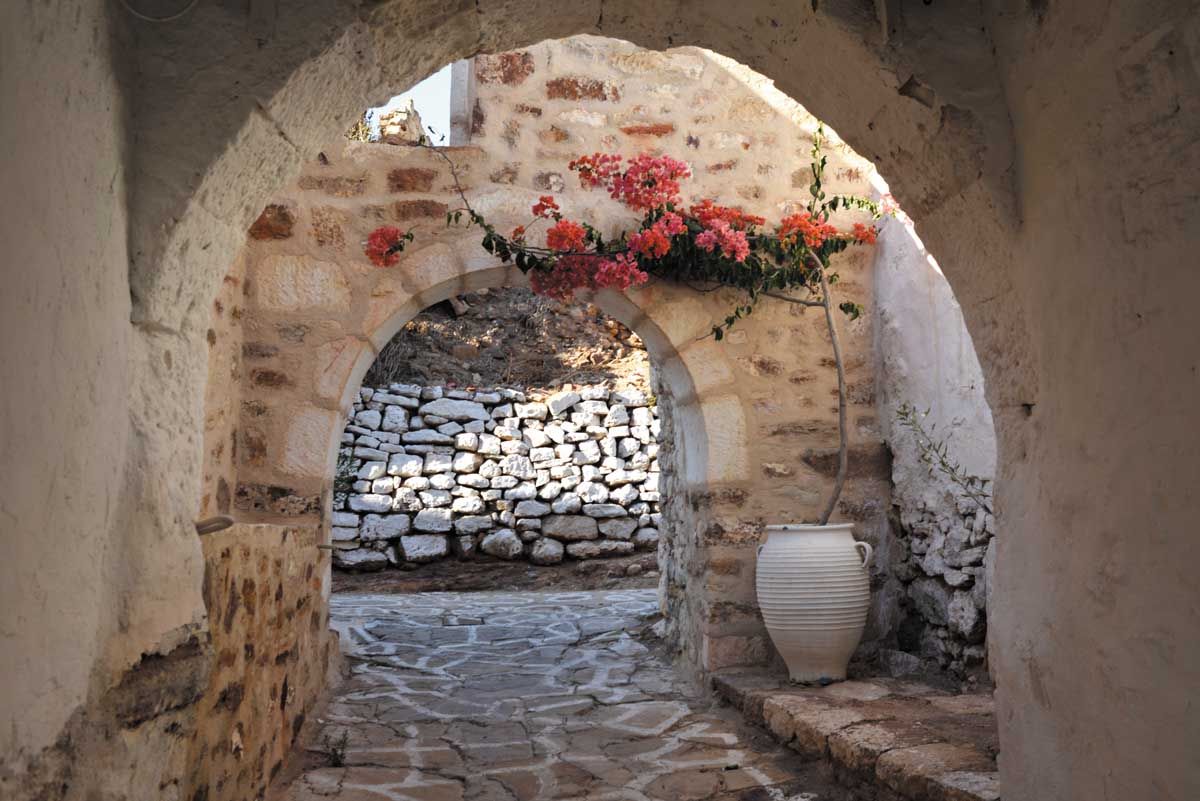 Περπατώντας ανάµεσα στα πάλλευκα σπίτια µε τα πολύχρωµα παντζούρια, δεν έχεις θέα στη θάλασσα σχεδόν από κανένα σηµείο του χωριού. Θα φτάσεις µέχρι το κάστρο αλλά δεν θα αισθανθείς ακριβώς ότι βρίσκεσαι στο ψηλότερο σηµείο του οικισµού. Το εντυπωσιακό είναι ότι τα τείχη του κάστρου αποτελούνται από κατοικήσιµα σπιτάκια. Η ταβέρνα Πανόραµα σε αποζηµιώνει για τη θέα που έχανες στα στενά δροµάκια. Είναι πραγµατικά απίθανη! Αξίζει να καθίσεις εδώ και να την απολαύσεις µε το καφεδάκι σου ή την µπιρίτσα σου µε µεζεδάκι ή φαγητό.