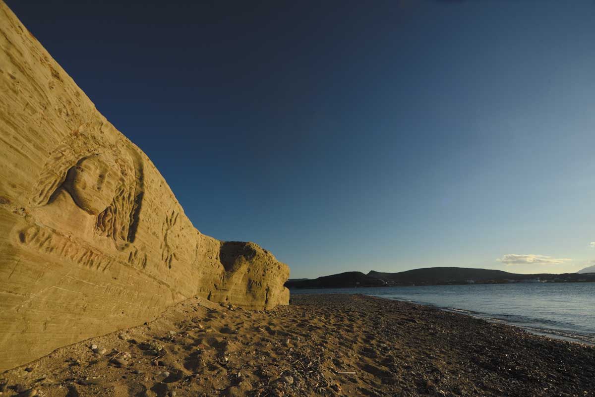 Η νότια πλευρά της Κιµώλου γίνεται όλη σχεδόν µία παραλία, καθώς η µία διαδέχεται την άλλη… Όλες έχουν αρµυρίκια, προσφέροντας άφθονη σκιά όπου και να καθίσεις. Άπειρες και οι επιλογές για τους οπαδούς του ελεύθερου κάµπινγκ. Στήνω κι εγώ τη σκηνή µου στην πρώτη παραλία, την Αλυκή. Απέναντι, σειρά από µικρά νησάκια αλλά και η γη της Μήλου. Αν ξυπνήσεις από τα χαράµατα, θα απολαύσεις κατακόκκινη την ανατολή, ενώ το βράδυ η ξαστεριά σε ταξιδεύει σε κόσµους µακρινούς... Συνεχίζοντας τον παραλιακό χωµατόδροµο, συναντάς στη σειρά την Μπονάτσα, το Καλαµίτσι, για να φτάσεις τέλος στο εκκλησάκι του Αϊ-Γιώργη. Εκεί αφήνω κι εγώ το ποδήλατο και συνεχίζω µε τα πόδια. Από κάτω η παραλία Αµόνι, η οποία κοιτά δυτικά και προσφέρει υπέροχο ηλιοβασίλεµα. Η παραλία σ’ αυτό το σηµείο σχηµατίζει µια καµπύλη από άµµο κι απέναντι, σε απόσταση αναπνοής, βλέπεις τη Μήλο. Σου δίνεται η εντύπωση ότι εύκολα πας και κολυµπώντας, τόσο κοντά είναι. Προχωρώντας λίγο στην παραλία µε τα επιβλητικά πορτοκαλοκόκκινα βράχια, µια έκπληξη σε περιµένει. Στα µαλακά πετρώµατα βλέπεις λαξεµένες ανθρώπινες µορφές άγνωστου καλλιτέχνη. Κολυµπάς στην ακρογιαλιά-µουσείο και τα γλυπτά σε συντροφεύουν µε την παρουσία τους!