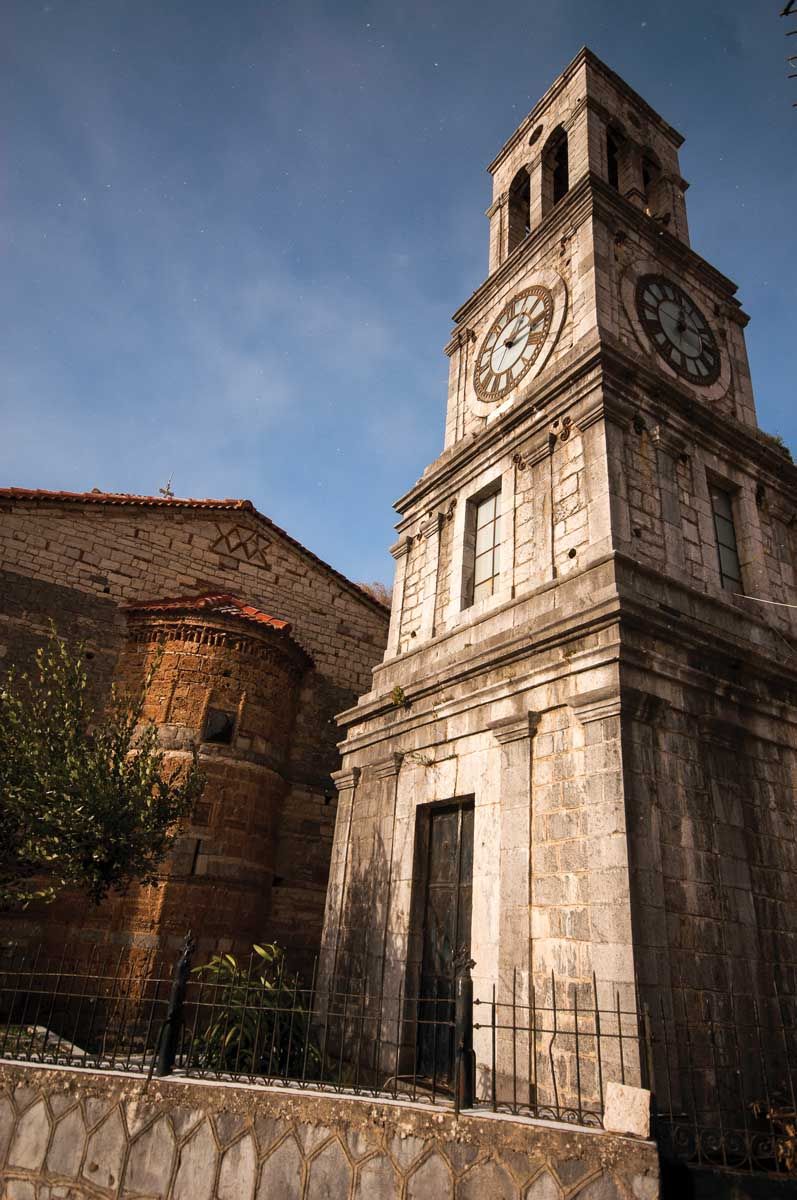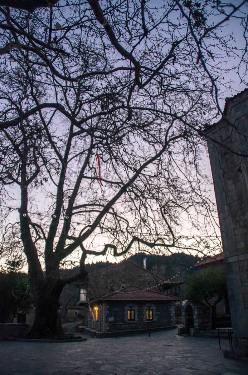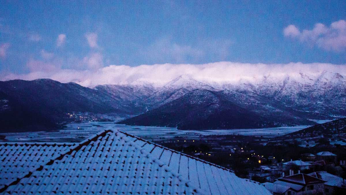 Με κατεύθυνση προς το Βαλτεσινίκο, παρακάμπτουμε τη διαδρομή μας για να επισκεφθούμε τη γειτονική Λάστα. Έξι από τα ομορφότερα χιλιόμετρα της εκδρομής μας, καθώς ο ήλιος δύει χρωματίζοντας μαβιά μια θάλασσα από κορυφογραμμές που ξεπηδούν σαν κύματα στο χιονισμένο φόντο. «Καλωσήρθατε στην ωραία μας Λάστα», μας υποψιάζει η πινακίδα του λιλιπούτειου χωριού που ξεχωρίζει για τη μεγαλοπρεπή εκκλησιά του ΑϊΓιώργη, έργο Λαγκαδιανού μάστορα και στολίδι της λιθόστρωτης πλατείας της. Με τον ευρύ ορίζοντα και την ποιητική θέα που προσφέρει από τα 1.060 μ. υψόμετρο, η Λάστα βρίσκεται σε μία από της ωραιότερες τοποθεσίες της ορεινής Γορτυνίας. Ακατοίκητη πια –τουλάχιστον τους χειμώνες– θα ήταν άδικο με τόση ομορφιά να ερημώσει παντελώς. Έτσι ο Σύλλογος των απανταχού Λαστέων σκέφτηκε να δελεάσει τους διερχόμενους επισκέπτες με τον «Αϊ-Γιώργη». Ένα αυτοεξυπηρετούμενο, ανοιχτό καφενείο το οποίο ξεκίνησε να λειτουργεί πριν από τη δεκαετία του 1980, προσφέροντας καφέ, τσάι, ροφήματα, ούζο, τσίπουρο, κρασί και παραδοσιακά λικέρ δίπλα στα δυο θεόρατα πλατάνια της πλατείας. Γεμάτο ζεστασιά και όμορφη ατμόσφαιρα που αποπνέει παράδοση αποτελεί έκπληξη για κάθε ανυποψίαστο. Με τους τοίχους γεμάτους παλιές φωτογραφίες, ντοκουμέντα της Επανάστασης, εικόνες και αναφορές που παρουσιάζουν την ιστορία του χωριού, αποτελεί ένα ολοζώντανο λαογραφικό μουσείο. Διαθέτει θέρμανση, βιβλία, ζεστό νερό και μπορεί να μέχρι και να φιλοξενήσει ανθρώπους που θα σεβαστούν το μεράκι και την προσφορά εκείνων που το φροντίζουν. Ένα απόλυτα επιτυχημένο εγχείρημα, καθώς όλα φαίνεται πως λειτουργούν ρολόι. Καθαρό και περιποιημένο, κατά την επίσκεψή μας διέθετε από γλυκά κεράσματα μέχρι και φαγητά που είχαν αφήσει οι πρωινοί του επισκέπτες. Η παρέα μάλιστα που συναντήσαμε εντός του –και ανακάλυψαν, όπως μας είπαν, τυχαία τούτη τη γωνιά– εφοδίασαν με ένα σωρό πράγματα τον καφενέ ενώ προτιμούσαν να καπνίζουν απ’ έξω. Λιγότερο σπάνιο απ’ όσο μερικοί μπορεί να νομίζουν, και πόσο υπέροχο, ο πολιτισμός να απαντάται με πολιτισμό!