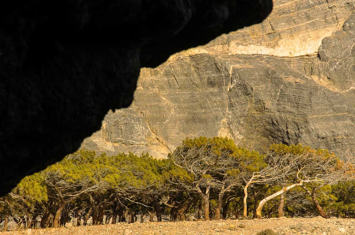 «Κρήτη χωρίς φαράγγι δεν νογιέται», γράφει ο εξαιρετικός Δ. Βασιλειάδης στο βιβλίο του Το Κρητικό σπίτι. Αμέτρητα φαράγγια διαθέτει η οροσειρά των Αστερουσίων, από τα οποία έξι τουλάχιστον μπορούν άνετα να περπατηθούν. Νοτιότερα της Οδηγήτριας χαμηλώνει ο χωματόδρομος για το Αγιοφάραγγο. Τόπος ιερός από την αρχαιότητα, στην κοίτη του υπήρχε ιερό του Ασκληπιού αλλά και μινωικός τάφος. Ξεπεζεύεις, παίρνεις όλες τις απαραίτητες προμήθειες και ξεκινάς το ευκολοδιάβατο μονοπάτι. Τοπίο ασκητικό, γεμάτο με σπηλιές και τις ανεξάντλητες μορφές των βράχων, κερδίζει και τον απαιτητικότερο περιπατητή. Σε κάθε σου βήμα, αλλάζει η προοπτική, αλλάζουν και οι μορφές: αρχάγγελοι και δαίμονες, στόματα που κρύβουν ναΐσκους, φως που μετεωρίζεται, σκιές που στερεώνουν μορφές αγίων… Μια γιγάντια σπηλιά σαν τεράστιο αυτί αφουγκράζεται την ενέργεια του τόπου ενώ μικροί και μεγάλοι εξερευνούν το εσωτερικό της. Αναρριχητές σκαρφαλώνουν στους κάθετους απότομους βράχους. Αδύναμος πάντα ο άνθρωπος μπροστά στο μεγαλείο της φύσης, βάλθηκε να την τιθασεύσει. Στο ξάνοιγμα του φαραγγιού κτισμένη σε σπηλιά από το 14ο αιώνα, η εκκλησία του Αγίου Αντωνίου υπήρξε κέντρο του ερημητισμού της περιοχής. Αστείρευτος ο νους του ανθρώπου επινοεί απίστευτους θρύλους και ιστορίες. Πως το Αγιοφάραγγο κατοικείται ακόμη από υπεραιωνόβιους ασκητές που εμφανίζονται μόνο σε όσους επιθυμούν. Πως τις νύχτες έρχονται και λειτουργούν τον Άγιο Αντώνη... Ένα παλιό πηγάδι αναδεύει πόσιμο νεράκι κι εσύ ψάχνεις για το Γουμενόσπηλιο, το εντυπωσιακό σπήλαιο με την κρυφή είσοδο, τόπο συγκέντρωσης των ασκητών απ’ όλα τα Αστερούσια. Η συνάντηση γινόταν μία φορά τον χρόνο, τη Λαμπρή. Τριακόσιες πέτρες υπήρχαν γύρω γύρω, μία για κάθε μοναχό, κι αν κάποιος απουσίαζε, σήμαινε ότι έχει κοιμηθεί ... Μια σπείρα ενέργειας, λαβύρινθος γύρω από μια ελιά – αναλογίζεσαι τον θρύλο που θέλει καθένα από τα μοναχικά τούτα δέντρα να ’ναι και η ψυχή ενός μοναχού που κοιμήθηκε εδώ... Δέος αλλά και μια ενέργεια που σε σηκώνει ψηλά. Η έξοδος φέρνει σε μία απ’ τις πιο μαγευτικές παραλίες της Κρήτης και μοιάζει λυτρωτική. Γιγάντια τα βράχια που την περιβάλλουν, προστάτες απ’ τον αέρα και τον ήλιο. Θαλασσινές σπηλιές, καθάρια, κρυστάλλινα νερά, βάπτισμα και κάθαρση για τους δεκάδες περιπατητές. Ορατό ως το μεσημέρι, το μυστικό σπηλαιοβάραθρο του Βουρβουλίτη κρύβεται στο ύψωμα αριστερά πριν την ακτή. Ένα φυσικό χάσμα που επικοινωνεί με τη θάλασσα σαν λιμνούλα περιτριγυρισμένη από κοφτερά, κατακόρυφα βράχια. Αν ανέβεις με πολλή προσοχή, η πανοραμική θέα στην παραλία και η αποκάλυψή του σε καθηλώνουν. Ατμόσφαιρα υποβλητική, τοπίο επιβλητικό και άγριο. Δυτικά, το φαράγγι του Μάρτσαλου έχει τη δυσκολία του να το διασχίσεις, όμως είναι κι αυτό ένα από τα ωραιότερα του νότου. Ο χωματόδρομος σε φέρνει 15 λεπτά από την Παναγιά, έναν σπηλαιώδη ναό που λέγεται ότι υπάρχει εδώ από την εποχή των πρώτων χριστιανικών διωγμών. Στα γύρω βράχια, τα κελιά των ερημιτών, μα και ίχνη αρχαίου ναού… Ένα φυσικό άνοιγμα στην κορφή, απ’ όπου κρέμεται ο πολυέλαιος, διαχέει το φως στο εσωτερικό της κωνικής σπηλιάς η οποία παραπέμπει σε μινωικό τάφο.