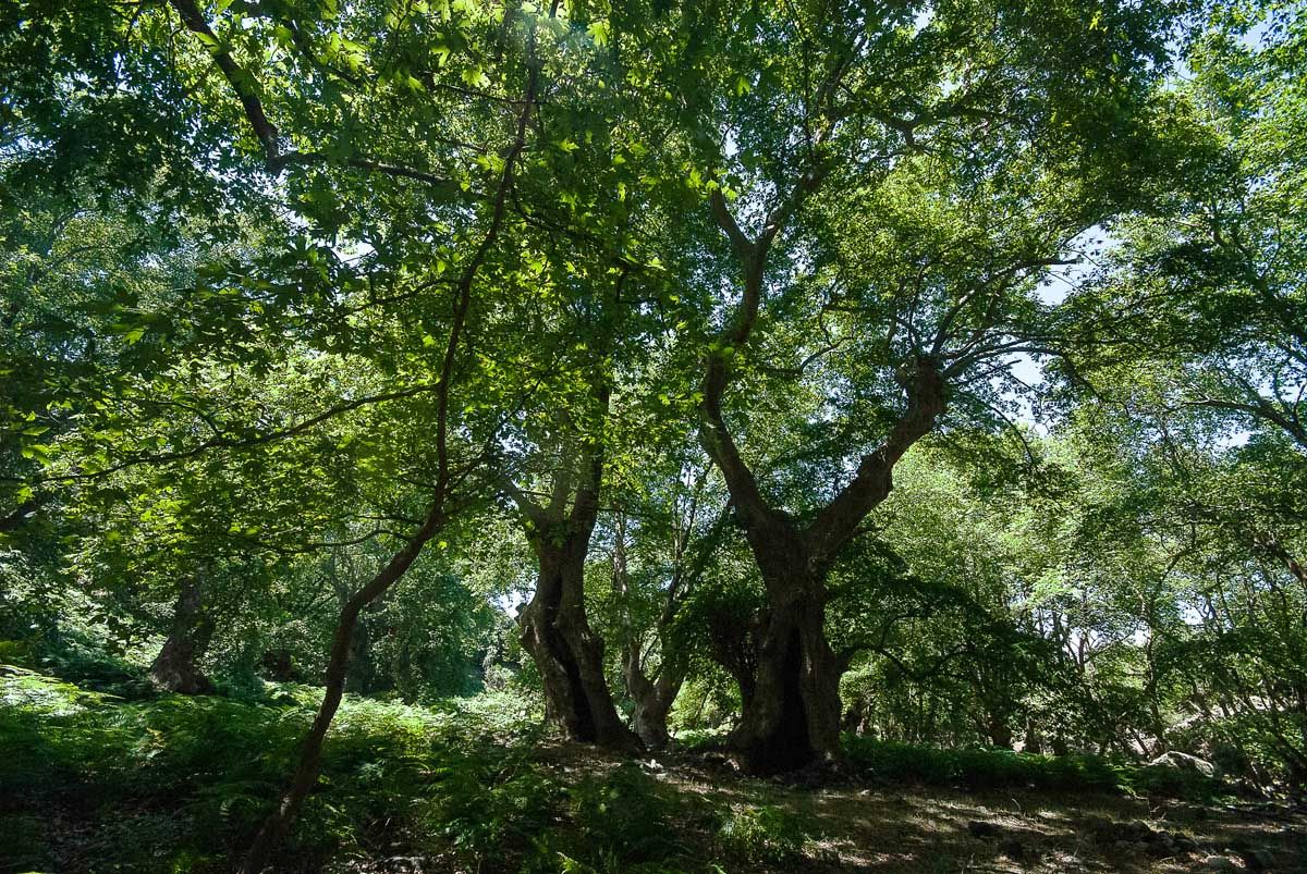 Το απέραντο δάσος με πλατάνια, λυγαριές και βαλανιδιές και τα ρυάκια με τα τρεχούμενα νερά κάνουν την Άνω Μεριά έναν πραγματικά ονειρεμένο τόπο για να ζήσεις... Όλα τα σπίτια διαθέτουν περιποιημένους κήπους και είναι μέσα στη βλάστηση. Θυμίζει τα Θέρμα, αλλά σε πιο ορεινή έκδοση. Ο ποταμός Άγκιστρος είναι που περνά από το χωριό και το υδροδοτεί. Ακολουθώντας έναν χωματόδρομο, φτάνεις στην ξακουστή για την ποιότητά της ταβέρνα «Καρυδιές». Ό,τι φας εδώ είναι των ανθρώπων που την έχουν. Μέσα στη φύση θα έχεις την τύχη να δοκιμάσεις πρωτόγνωρες γεύσεις, όπως είναι η τσιγαριστή φασολάδα στο τηγάνι. Κατηφορίζοντας φτάνεις στην παραλία των Κήπων, το άλλο τερματικό σημείο του οδικού δικτύου. Εδώ είναι που παρκάρουν τα αμάξια τους οι λουόμενοι κάτω από σκιές και τα κατσίκια καβαλάνε τα αυτοκίνητα για να φάνε από τα λιγοστά δέντρα που υπάρχουν! Είναι μια βοτσαλωτή πανέμορφη παραλία, στην οποία αξίζει να κολυμπήσεις. Αν κοιμηθείς αποβραδίς στην παραλία, θα βιώσεις ένα από τα πιο αξιομνημόνευτα ξημερώματα της ζωής σου!