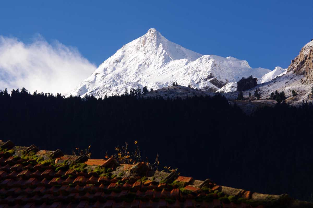 Ξάφνου σαν διαμάντι ακατέργαστο, που έσκισε θαρρείς τη μήτρα της γης, ορθώνεται μπροστά μας η Γκιώνα. Με κλίση αρνητική, υπερφυσική κι επιβλητική φαντάζει σαν μαινόμενος Κένταυρος που μας διατάζει να προσέξουμε τη Στρώμη, το χωριό που φροντίζει, κρατώντας του παντοτινή σκιά.