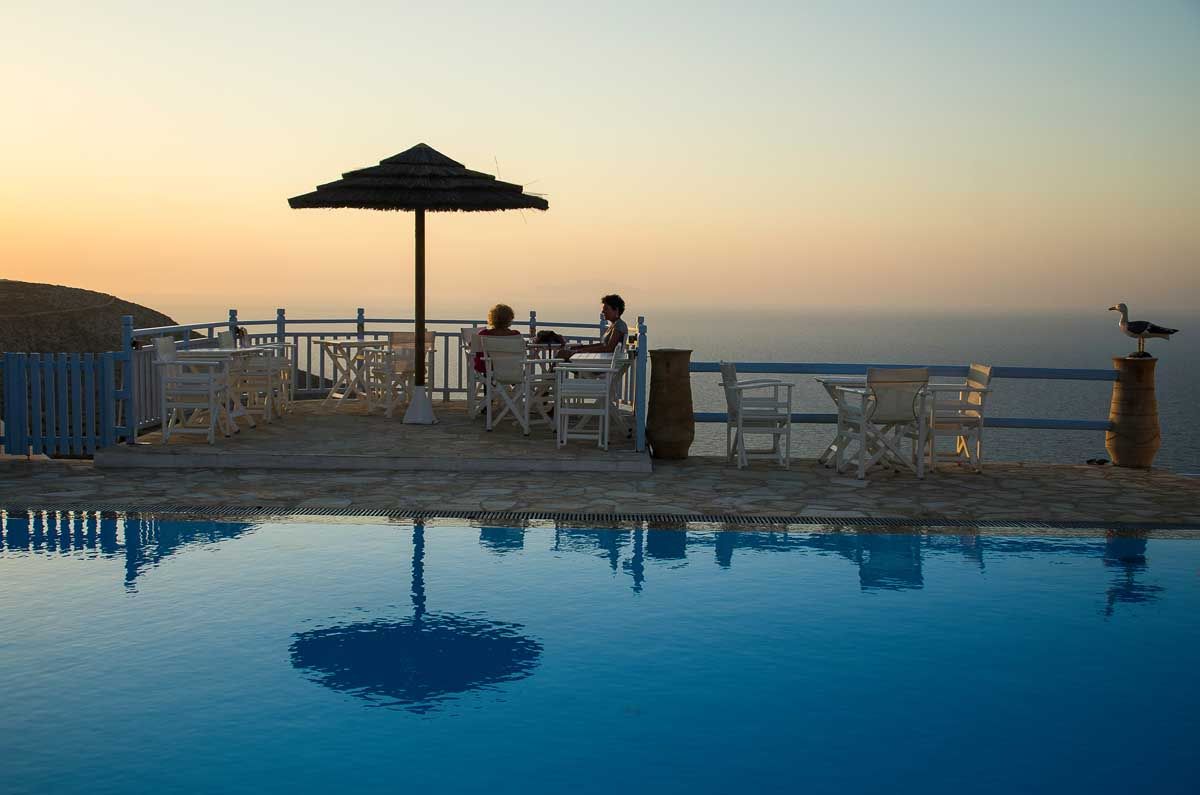 …Όλοι οι δρόμοι οδηγούν πια στην Άνω Μεριά. Τον αγροτικό συνοικισμό στα βόρεια του νησιού, που έμεινε μακριά από τα φώτα της δημοσιότητας, γι’ αυτό και κρατά ακόμη ακατέργαστα κι αυθεντικά πολλά από τα χαρακτηριστικά του. Είναι ο παραδοσιακός φούρνος που φτιάχνει καθημερινά ζυμωτό ψωμί, κουλούρες με γλυκάνισο, παραδοσιακές πίτες και «ματσάτα» χρησιμοποιώντας ως καύσιμο ξερά φρύγανα. Εδώ θα βρεις και το εργαστήριο που προμηθεύει το νησί με το μαλακό ντόπιο παστέλι, ένα παραδοσιακό προϊόν που ήταν συνυφασμένο με τον γάμο. Μυστικό του: το εξαιρετικό μέλι του νησιού. Εδώ και το εγκαταλειμμένο πια λιοτρίβι, τα σκόρπια σπιτάκια με τις όμορφες αυλές, οι Κάτεργο, κατά τους ντόπιους η εντυπωσιακότερη παραλία του νησιού παλιές λιθόκτιστες «θεμωνιές» και τα «λεμονόσπιτα», τα διάσπαρτα μελίσσια, οι λιγοστές ταβέρνες, τα γαϊδουράκια που πάνε κι έρχονται, το παλιό λεωφορείο. Στο Λαογραφικό Μουσείο, μια παραδοσιακή «θεμωνιά» με εκπληκτική θέα προς τη Χώρα και τη Σίκινο μάς ξεναγεί στα μυστικά της αυτάρκειας. Οι «θεμωνιές» δεν είναι παρά τα παραδοσιακά σπίτια του νησιού, πριν τα τραβήξει με το ρεύμα του ο τουρισμός. Αποτελούσαν αυτόνομες οικιστικές μονάδες αφού διέθεταν φούρνο, στάβλο, αχυρώνα, κοτέτσι, στέρνα, «πλυστριά», κελάρι, αργαλειό, υπαίθριο λιοτρίβι, πατητήρι και αλώνι, κτήματα με αμπέλι, φασόλια, ντομάτες και φυσικά το χαρακτηριστικό «λεμονόσπιτο», ένα λιθόκτιστο σπιτάκι που προστάτευε τον ευαίσθητο καρπό από τους δυνατούς ανέμους. «Χρήματα δεν γνωρίζαμε…» μου λέει η κ. Ειρήνη Δεκαβάλλα, «…είχαμε τα πάντα, κάναμε απ’ όλα. Θυμάμαι τους γονείς μου: φτιάχνανε τυριά, λάδι, κρασί, τσίπουρο, ψωμί… Είχαμε ελιές, λεμόνια, κότες, κουνέλια, γάλα και μαλλί από τα πρόβατα, στέλναμε τα παλιά ρούχα και μας τα έκαναν κουρελούδες…» Στο μαγειρειό της κυρα-Ρήνης θα δοκιμάσουμε ντολμαδάκια, εξαιρετικά «ματσάτα» με κουνέλι, πανσέτα γεμιστή με αρνίσια συκωταριά, φολεγανδριώτικο τσίπουρο και γλυκό τριαντάφυλλο. Τα μαγειρειό-καφεπαντοπωλείο με τα λιγοστά τραπεζάκια βρίσκεται εδώ από το 1952 και η ιδιοκτήτρια έχει να θυμάται πολλά… Αυτοσχέδια γλέντια μέχρι πρωίας και πανηγύρια βερεσέ με μεζέδες και όργανα. «Τώρα όλα είναι αλλιώτικα…» Σιγά σιγά γίνονται πάντως προσπάθειες από τον Δήμο να αναβιώσουν τα έθιμα και τα παραδοσιακά πανηγύρια του νησιού. Τον χειμώνα πάντως, παρά τα δυνατά μποφόρια, όλοι μαζεύονται εδώ αφού και τα περισσότερα μαγαζιά της Χώρας παραμένουν κλειστά. Στην Άνω Μεριά θα φας καλά. Στην ταβέρνα του Μίμη, στη «Συνάντηση», στο «Ηλιοβασίλεμα» του Δημήτρη Μαρινάκη. Είναι το τελευταίο ταβερνάκι του οικισμού κι από δω θα απολαύσεις τον ήλιο να σβήνει στο πέλαγος πέρα από τα εκκλησάκια των Αγίων Αναργύρων και του Αγίου Παντελεήμονα. Ακόμη καλύτερα να επιλέξεις μια βόλτα στα σύντομα και όμορφα λιθόκτιστα μονοπάτια που οδηγούν απευθείας εκεί. Η Φολέγανδρος άλλωστε θεωρείται παράδεισος για τους οδοιπόρους και τους περπατητές. Αν διαθέτεις μέρες, είναι πολλά τα μονοπάτια που μπορείς να περπατήσεις ανάμεσα σε ξερολιθιές, συντροφιά με τη θέα του Αιγαίου. Ο δρόμος τελειώνει στο εκκλησάκι της Χρυσοπηγής. Από δω θα προσεγγίσεις οδικώς τον μικρό όρμο που σχηματίζει την παραλία Αμπέλι. Λίγο πιο πάνω ένας χωματόδρομος σε οδηγεί στη μικροσκοπική παραλία της Λυγαριάς κι έπειτα του Αϊ-Γιώργη, τη βορειότερη παραλία του νησιού, με τα κύματα, τα «σύρματα», τ