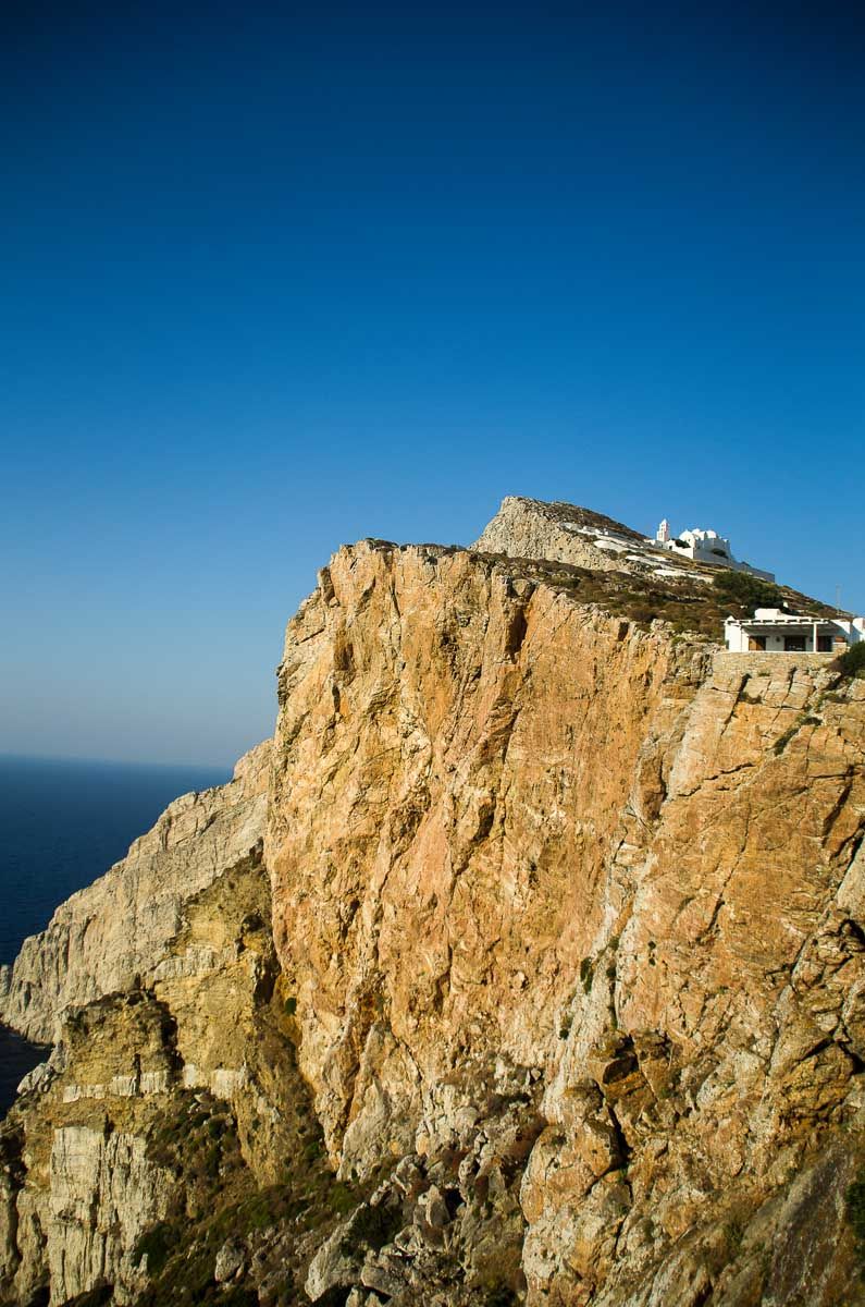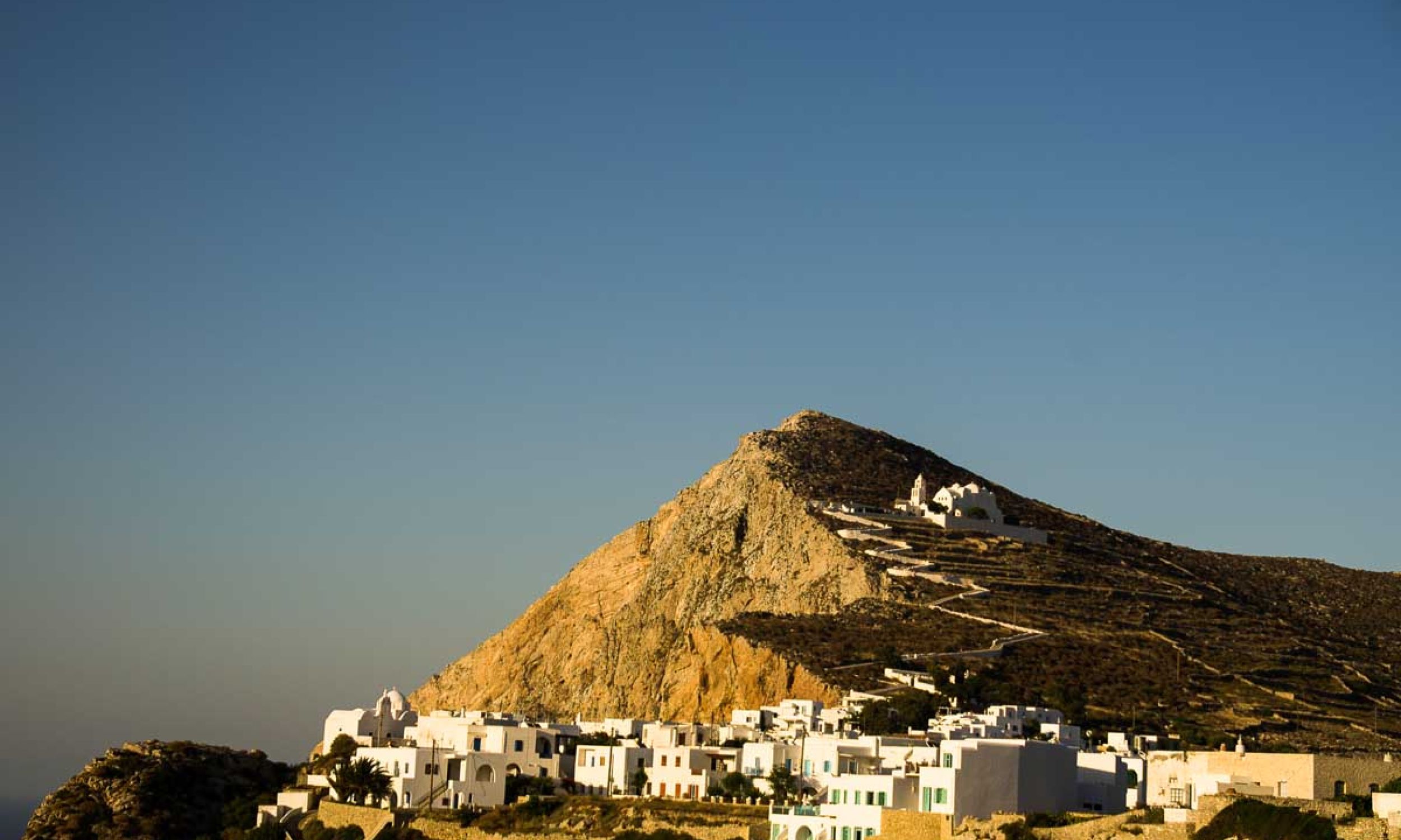 Στην Παναγιά, θα ανηφορίσεις σούρουπο. Είναι ένα από τα καλύτερα μέρη του νησιού για να απολαύσεις τη δύση του ήλιου αλλά και μια βόλτα που θα σου μείνει αξέχαστη. Με εκείνη την απεριόριστη θέα, καθώς ανηφορίζεις το φιδωτό τσιμεντωτό, τα «στρατάκια», όπως λέγανε παλιά οι ντόπιοι, αναλογίζεσαι τους θρύλους με τους πειρατές με τους οποίους είναι συνυφασμένη η εικόνα της, που αποτελεί και ένα από τα σημαντικότερα κεφάλαια της παράδοσης του νησιού. Είναι την ημέρα του Πάσχα που η εικόνα της Παναγιάς αφήνει το δικό της «σπίτι» για να γυρίσει ένα ένα τα σπίτια της Χώρας με συνοδεία τους εκατοντάδες κατοίκους του νησιού που ακολουθούν τη λιτανεία της. Κεράσματα και φαγητά σ’ όλα τα σπίτια, που ανοίγουν για να την υποδεχτούν σε μια τριήμερη πασχαλινή γιορτή που θεωρείται από τις ομορφότερες της χώρας. Η εκκλησιά είναι χτισμένη πιθανότατα στη θέση αρχαίου ιερού, από το οποίο χρησιμοποιήθηκε οικοδομικό υλικό για την ανέγερσή της. Από αρχαίες επιγραφές προς τιμήν της Σελασφόρου Αρτέμιδος και του Προστατηρίου Απόλλωνος, που βρέθηκαν στην περιοχή, οι ερευνητές υποστηρίζουν ότι ήταν αφιερωμένο στους δύο θεούς. Θα δεις στο καμπαναριό ενσωματωμένο κορμό μαρμάρινου αγάλματος ρωμαϊκής εποχής, ενώ στον αυλόγυρο είναι ακουμπισμένη μια μεγάλη μαρμάρινη κυλινδρική βάση της ίδιας εποχής. Η ιστορία της Φολεγάνδρου, που πήρε το όνομά της από τη φοινικική λέξη phelekgundari (πετρώδης γη) ή από τον Φολέγανδρο, γιο του Μίνωα και πρώτο οικιστή της περιοχής, χάνεται στα βάθη των αιώνων. Στα βόρεια του νησιού, στη θέση Κάστελλος, διατηρούνται λείψανα οικισμού της Πρωτοκυκλαδικής ΙΙ περιόδου (μέσα 3ης χιλιετίας π.Χ.). Στη Χρυσοσπηλιά, το εντυπωσιακότατο σπήλαιο στα βόρεια του νησιού, που βρίσκεται λίγο πάνω από τη θάλασσα, τα τοιχώματα και η οροφή των θαλάμων είναι γεμάτα με 400 ονόματα και φράσεις που χρονολογούνται τον 4ο αιώνα π.Χ. Λόγω αντικειμενικών δυσκολιών και του δυσπρόσιτου της περιοχής, παραμένει δυστυχώς ανεκμετάλλευτο. Ένα τεράστιο «μάτι» που κοιτάει τη θάλασσα, ένα σπήλαιο-φάντασμα στο έλεος του Βοριά, που μέσα στους απόκρυφους θαλάμους του κρύβονται πολλά ανεξερεύνητα μυστικά.