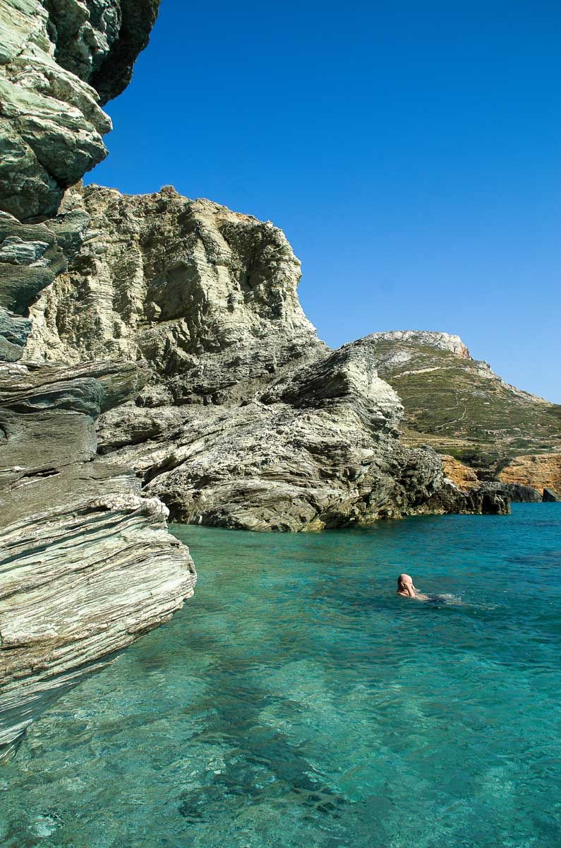 Αν κάτι δεν χορταίνεις με τίποτα στη Φολέγανδρο, είναι αυτά τα νερά, το χρώμα τους, που φτάνει από το εξωτικό τιρκουάζ μέχρι το σκούρο μπλε του πελάγους.
