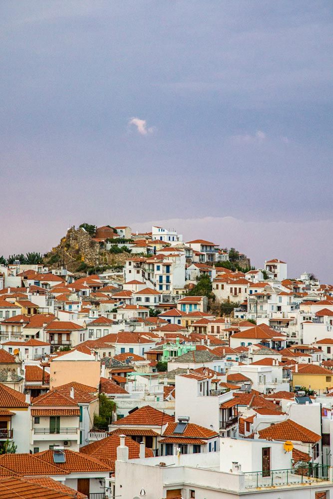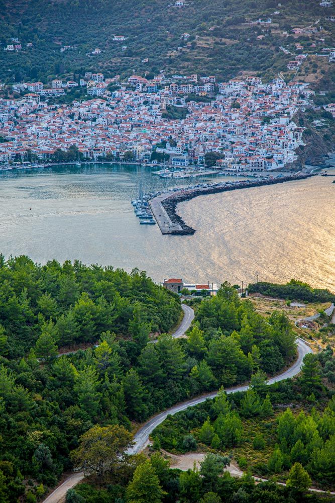 ΟΗ Σκόπελος έχει τρία λιμάνια, πέρα από το ομώνυμο, τη Γλώσσα και τον Αγνώντα. Γι’ αυτό και όταν κανείς κλείνει εισιτήρια καλό είναι να γνωρίζει ποιο λιμάνι εξυπηρετεί καλύτερα τον προορισμό του. Το νησί ανήκει στις Βόρειες Σποράδες και είναι το μεγαλύτερο, με τη Σκιάθο και την Αλόννησο να ακολουθούν. Έχει δύο βουνά, το Παλούκι και το Δελφί, και το μεγαλύτερο μέρος του είναι κατάφυτο – και αυτό δεν είναι σχήμα λόγου. Εδώ το μάτι σου ξεκουράζεται από το πράσινο, ο δημιουργός δεν έδειξε φειδώ στα δέντρα, που κυριολεκτικά κρέμονται πάνω από τα γαλαζοπράσινα νερά, και τα μοίρασε απλόχερα ακόμη και στα μικρά βράχια μέσα στη θάλασσα. Πράσινο ΠΑΝΤΟY!