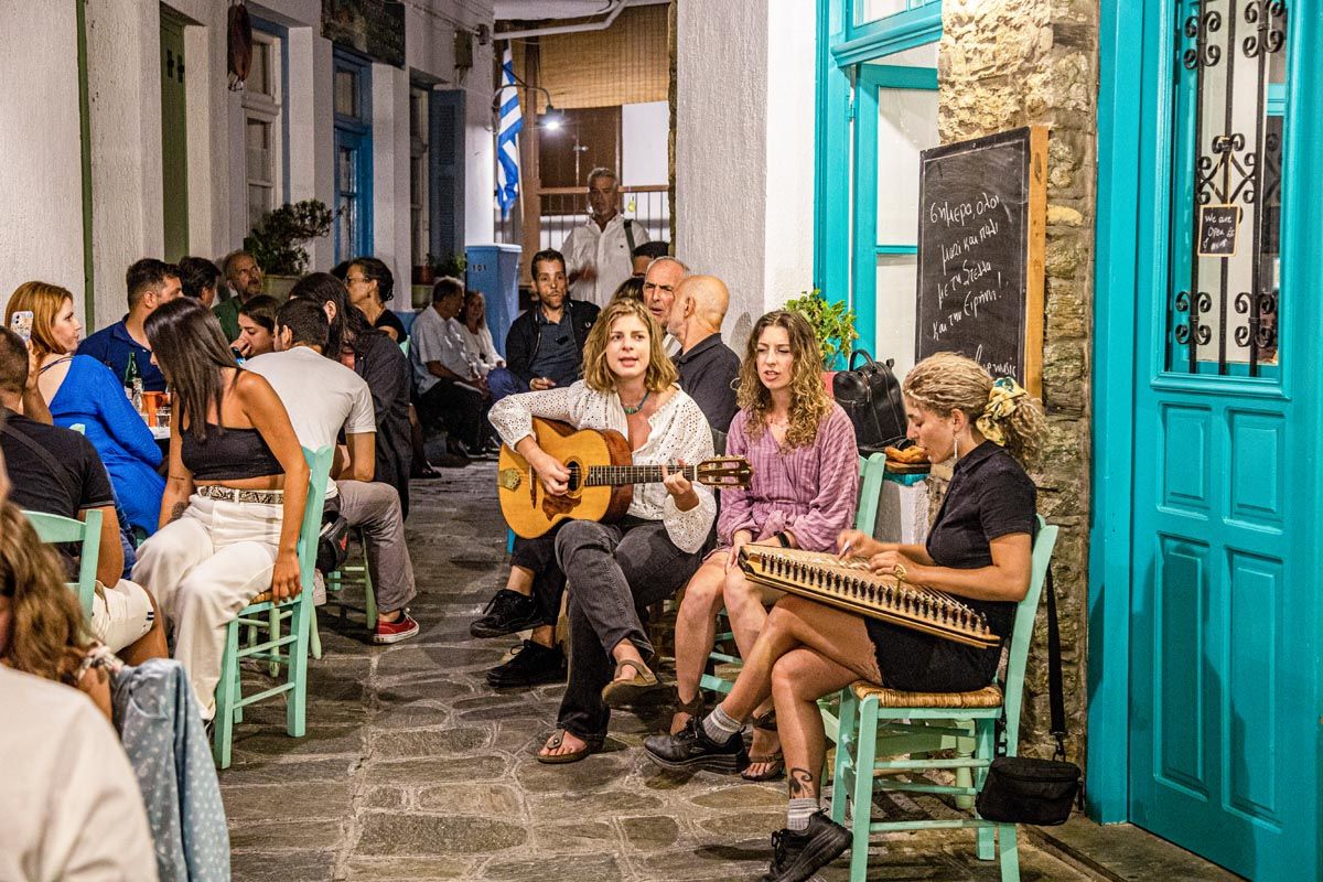 Εδώ θα βρεις πολλά μπαράκια και καφέ και πέρα από τα πιο τουριστικά που θα συναντήσεις, αξίζει να πάρεις το χρόνο σου και να εντοπίσεις και άλλα μικρότερα – κρυμμένα στα στενοσόκακα ή στα ψηλά σημεία της Χώρας που προσφέρουν πανοραμική θέα. Το βράδυ η ανηφοριά της Χώρας είναι πιο εύκολη καθώς δεν είσαι αντιμέτωπος με τον ήλιο παρά μόνο με τα σκαλιά. Σίγουρα όμως αξίζει και η βόλτα με το φως της ημέρας. Στα συν της πρωινής βόλτας είναι ότι πολλαπλασιάζονται οι πιθανότητες να δεις το εσωτερικό μερικών εκκλησιών.