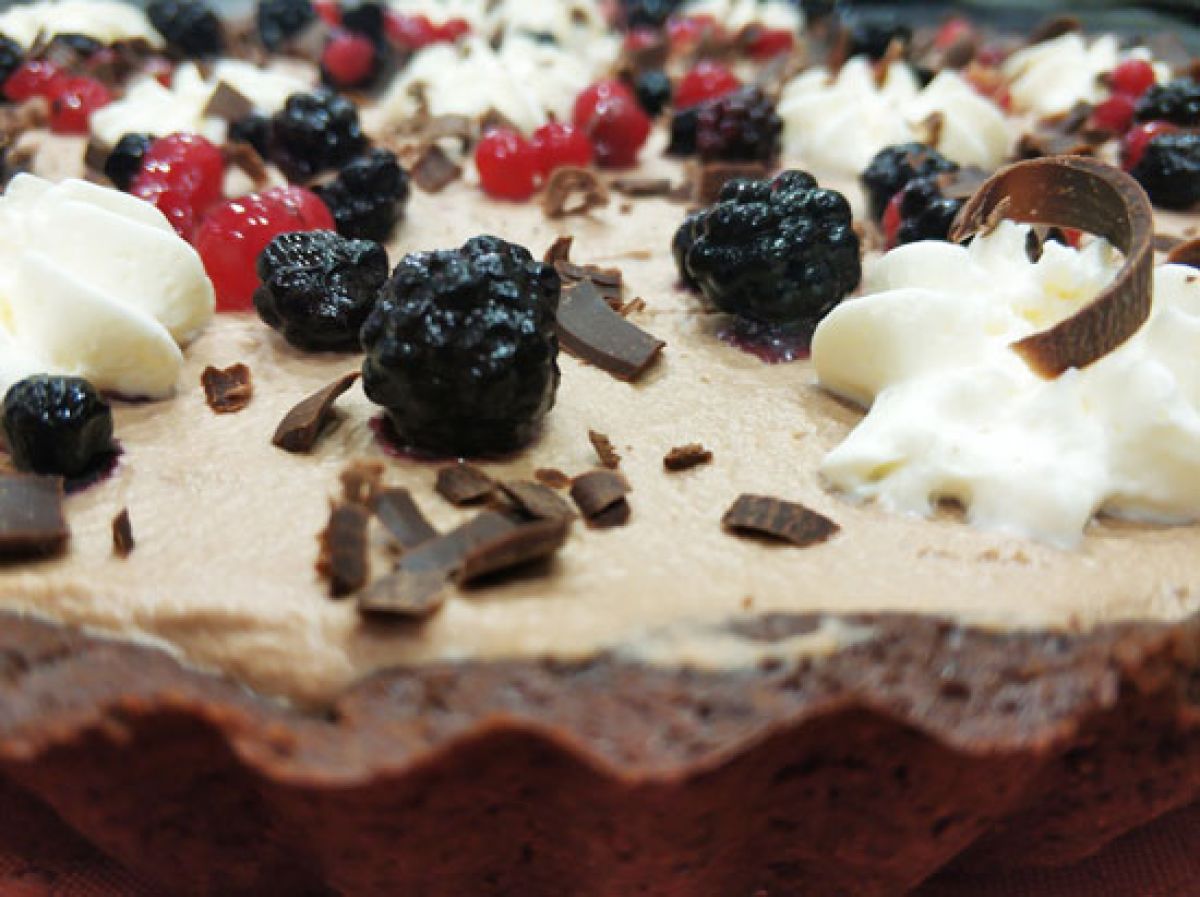 Τάρτα σοκολάτας με σαντιγί μαστίχας και φρούτα του δάσους