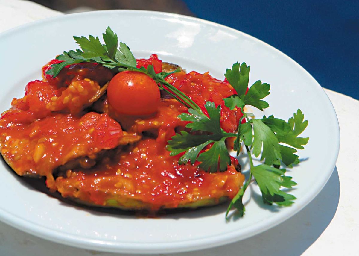 Άσπρες μελιτζάνες με σάλτσα ντομάτας με βασιλικό