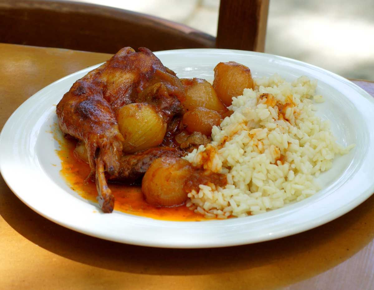 Κουνέλι στιφάδο με δάφνη και κανέλα